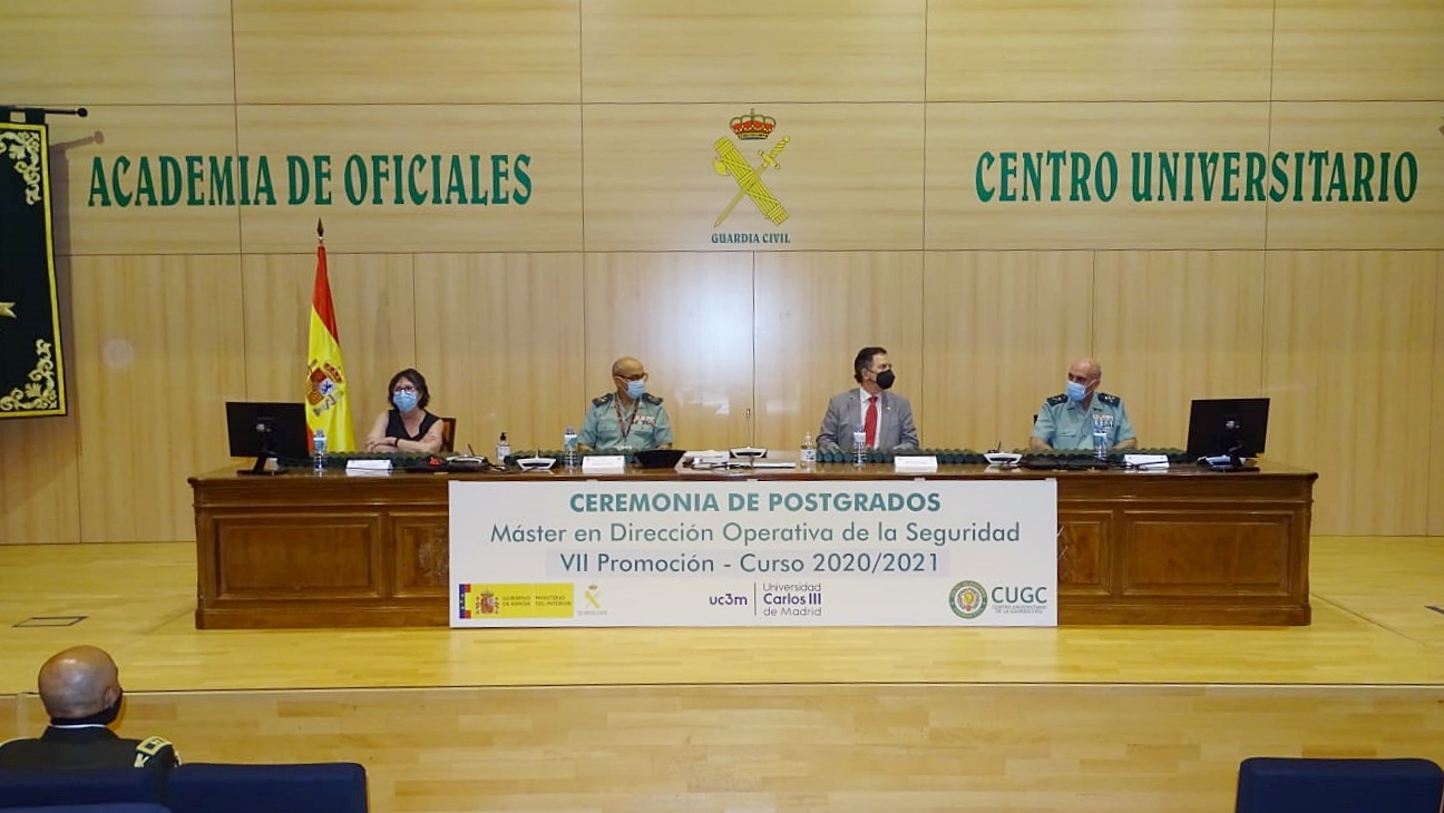 Ampuero, invitado de honor al acto, estuvo acompañado del Agregado de Carabineros ante la Embajada de Chile en España, coronel John Cornejo Varela. Los oficiales graduados del VII máster en Dirección Operativa en Seguridad del Centro Universitario de la Guardia Civil española, son la Subteniente, Jannette Llanos Llanos y el Subteniente, Marcos Magaña Saumann.