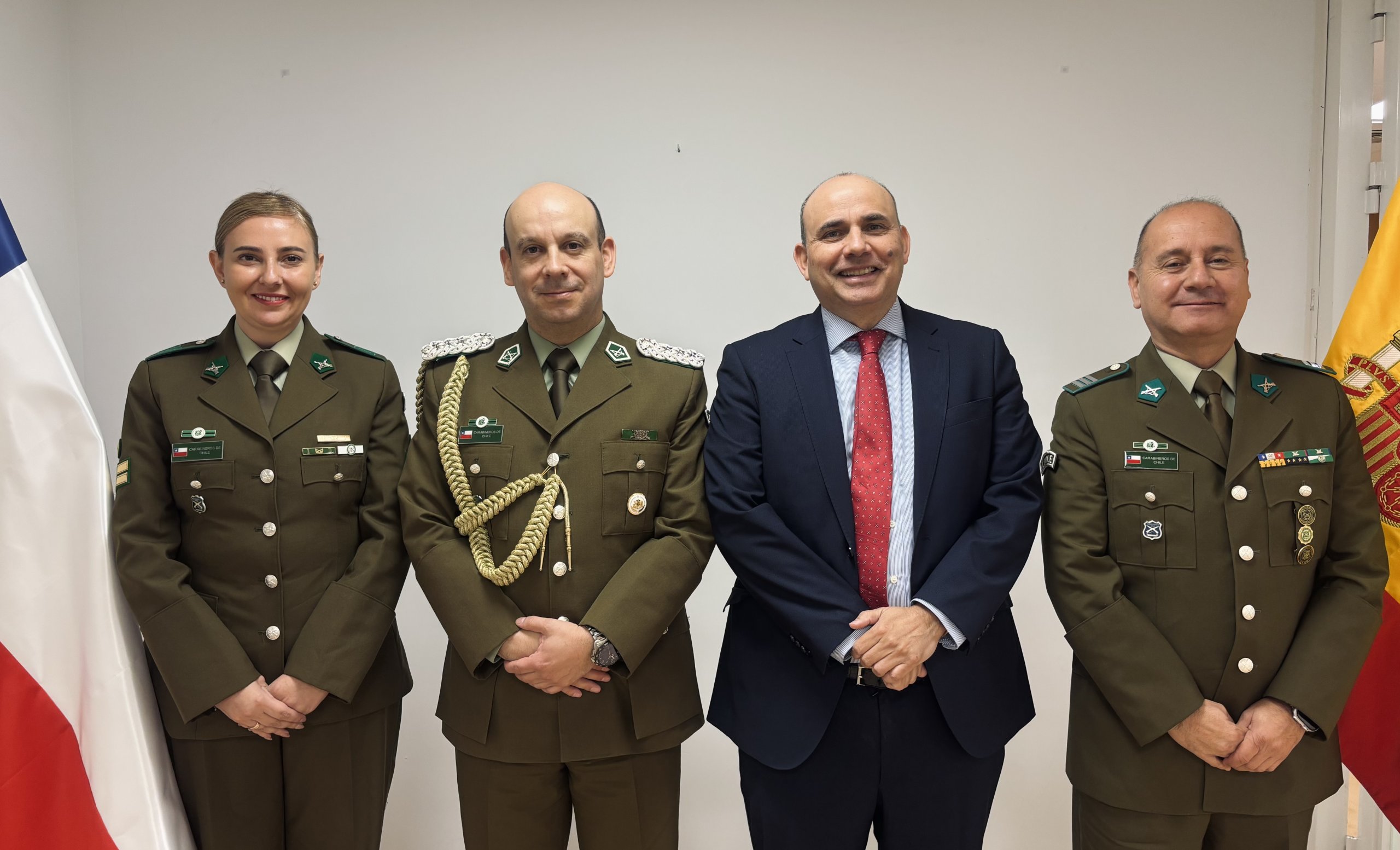 El Encargado de Negocios de la Embajada de Chile en España, Francisco Devia, recibió en a los nuevos agregados de Carabineros; Coronel Gonzalo Muñoz, Suboficial Leandro Salinas y Sargento 1ro. Lucia Salazar, quienes se incorporan a la misión con el propósito de fortalecer los lazos de cooperación institucional entre Chile y España.