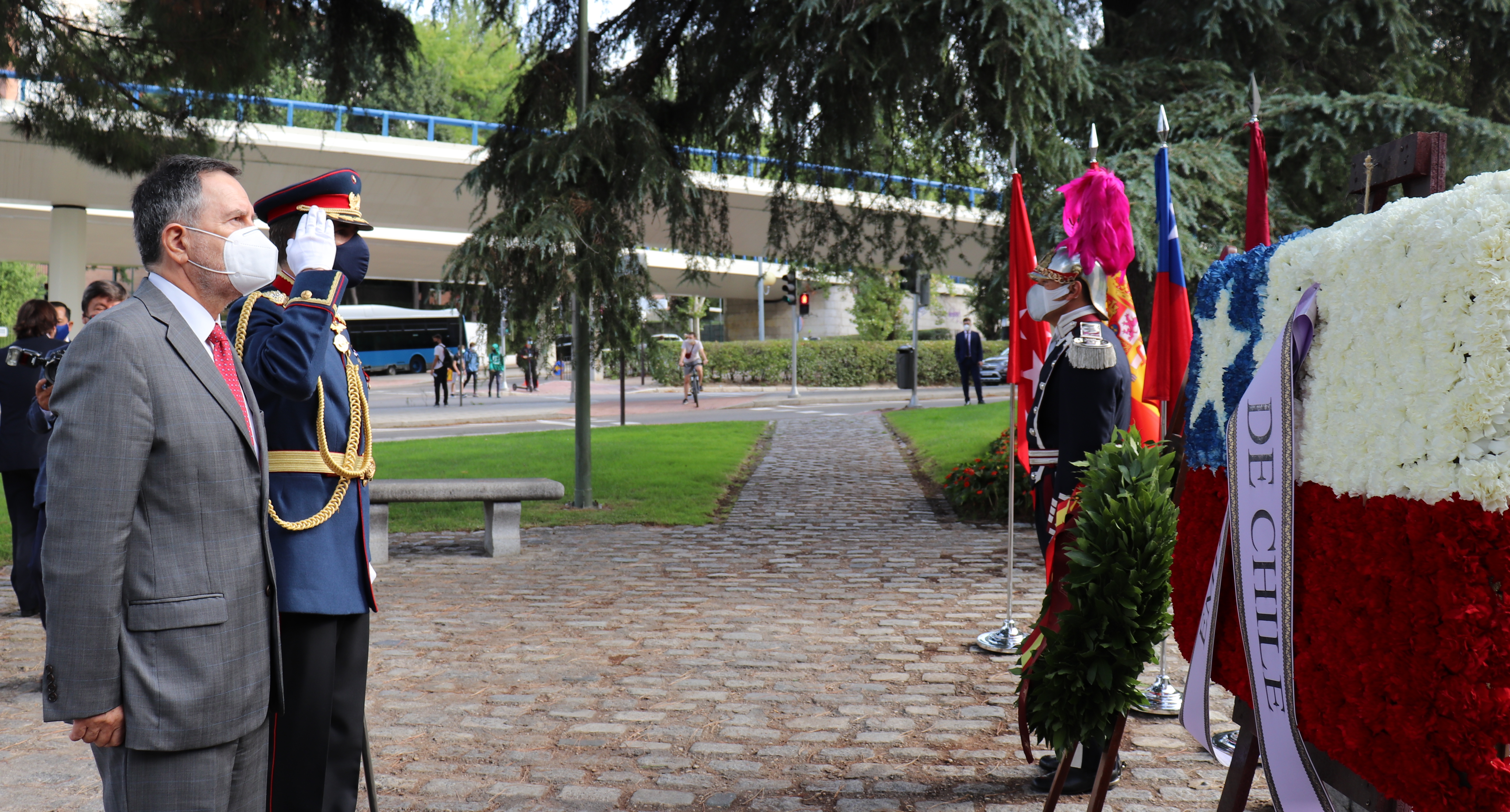 El Embajador de Chile ante el Reino de España, Roberto Ampuero, llamó a "recordar el papel jugado por el Padre de la Patria, tanto en el campo de batalla como en el campo político, especialmente en estos momentos en que los chilenos estamos enfrentando un diálogo que no es fácil, pero confiados en que podremos salir adelante y creer en el futuro del país".