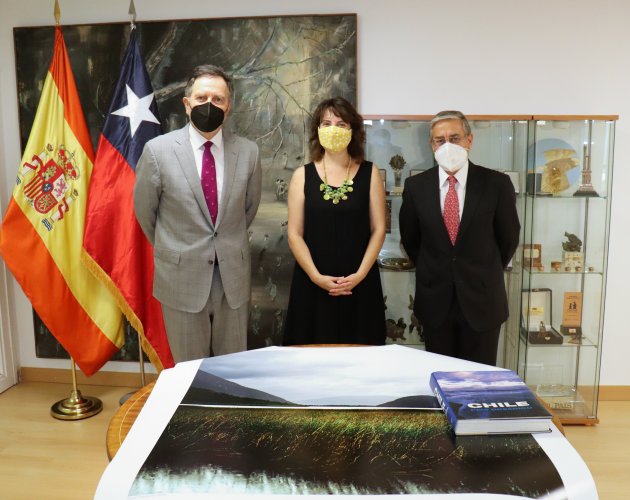 El Embajador Ampuero, elogió la excelente trayectoria artística de Magdalena Correa, tanto lo internacional como en España, y conversaron de los proyectos presentes y futuros de la fotógrafa.