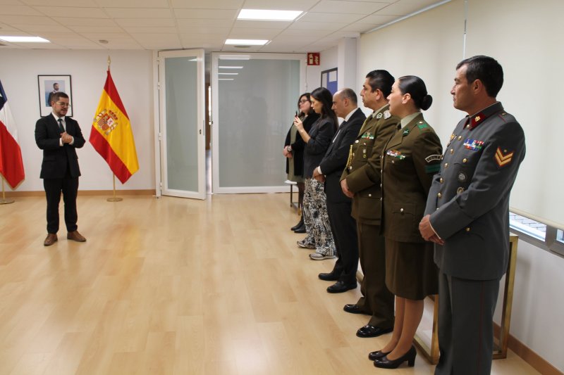 La Embajada de Chile en España, junto a todas sus agregadurías y el personal administrativo, expresa su sincero reconocimiento al coronel Jorge Valdivia, la cabo 1° Belén Cornejo, el sargento 2° Jonathan González de Carabineros de Chile y el suboficial del Ejército de Chile, Raúl Valenzuela, por su destacada labor en España.