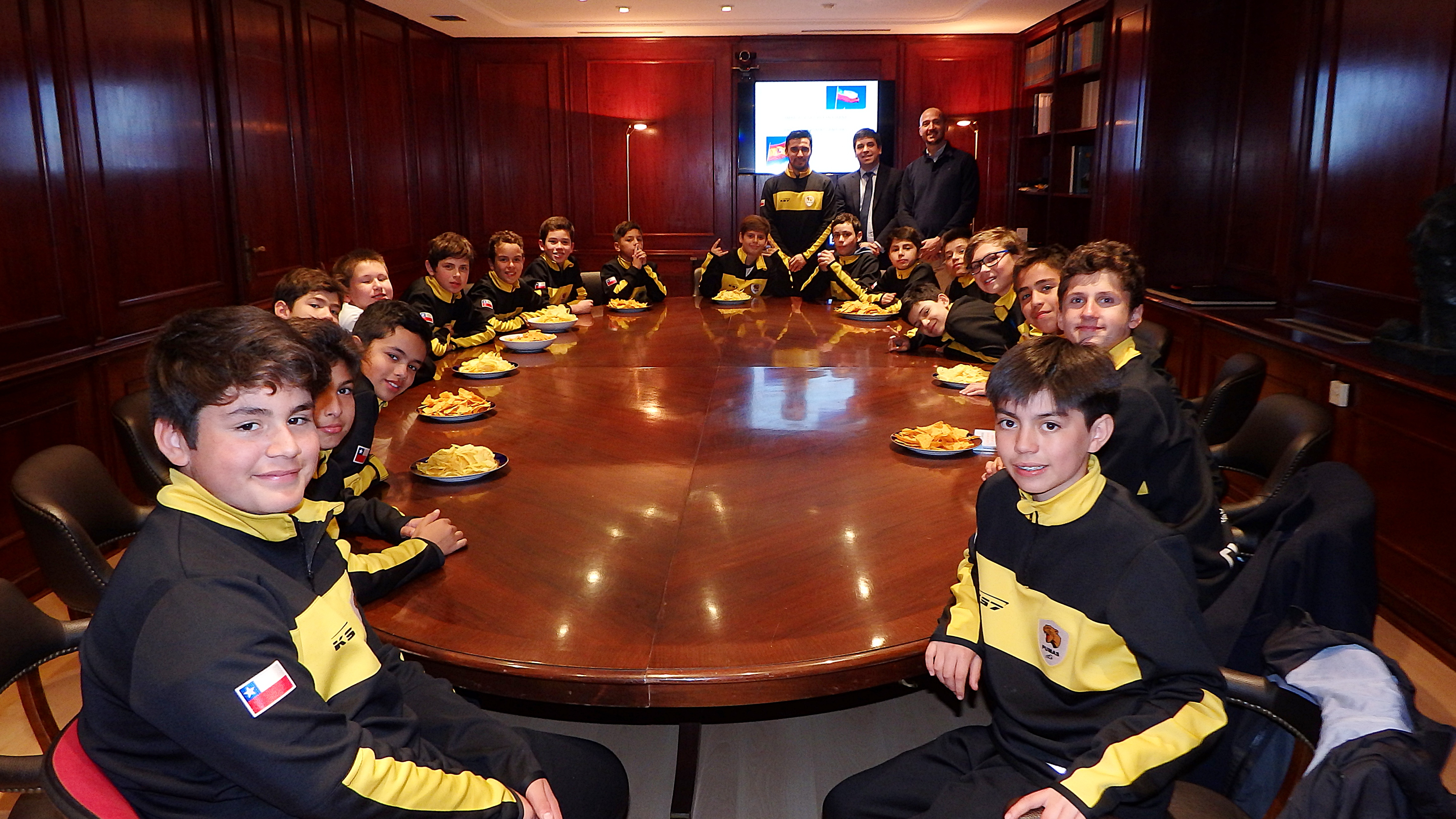 Jóvenes promesas del futbol chileno visitan la Embajada de Chile