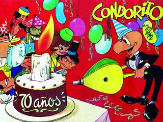 Cóndor y humano, chileno y universal, estrella y marginado, venerado por algunos y enjuiciado por otros, ídolo popular y marca registrada, histórico y actual, Condorito no se deja clasificar. Creado por el dibujante René Ríos Boettiger (Pepo) y publicado inicialmente hace 70 años en las páginas de la revista Okey (1949), Condorito ha cambiado una y otra vez. Se ha renovado entre páginas impresas y digitales, el cine y la publicidad, ha ejercido los más diversos oficios y ha traspasado las fronteras chilenas para transformarse en un ícono latinoamericano.