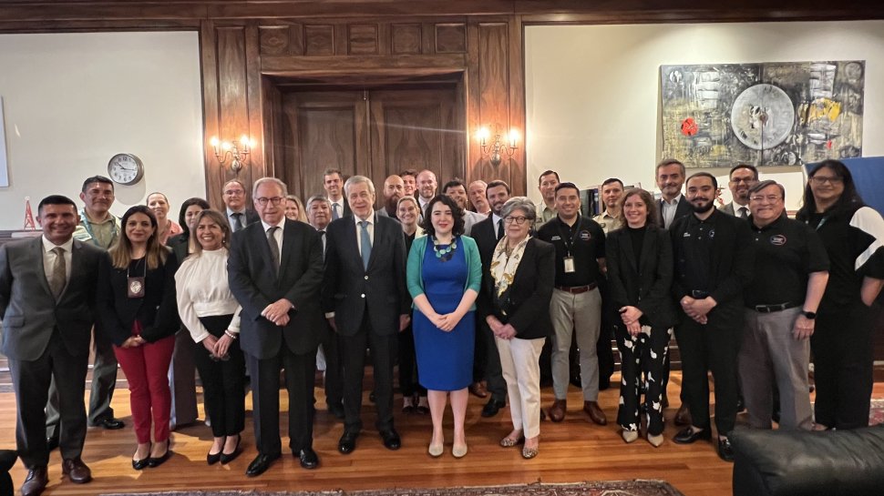 En el marco de actividades que realiza a Estados Unidos, el canciller Alberto Van Klaveren saludó a los funcionarios de nuestra embajada en Washington DC. El ministro destacó la importante labor que se realiza desde estas oficinas y el aporte que cada uno hace para el fortalecimiento y proyección internacional de la política exterior de Chile".