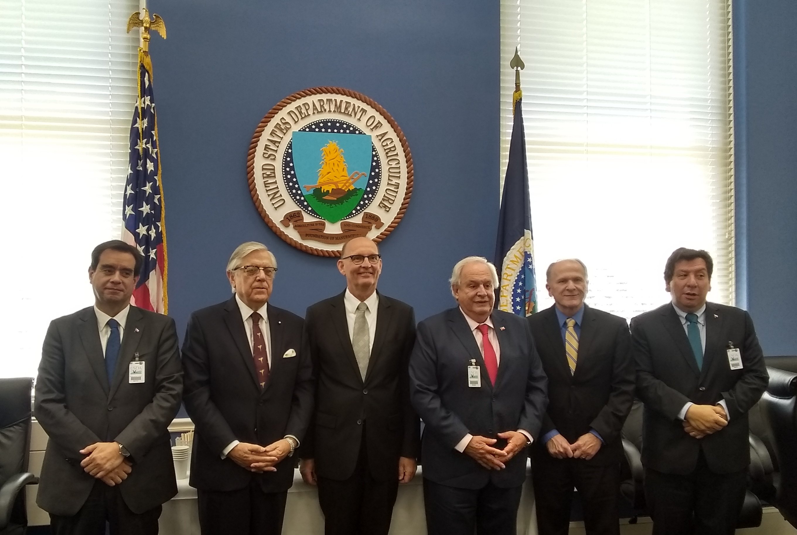 Entre los días 27 y 28 de junio, el Director Nacional del Servicio Agrícola y Ganadero (SAG), Horacio Bórquez C., acompañado del jefe de la División de Proteccion Agricola y Forestal, Rodrigo Astete, y de Óscar Videla, jefe de la División de Proteccion Pecuaria del SAG, sostuvieron sendos encuentros con las autoridades del Departamento de Agricultura de los Estados Unidos, encargadas de las áreas de Seguridad Alimentaria e Inspección, Subsecretaria Mindy Brashears y el Subsecretario del Servicio de Inspección de Salud Animal y Vegetal, Greg Ibach.