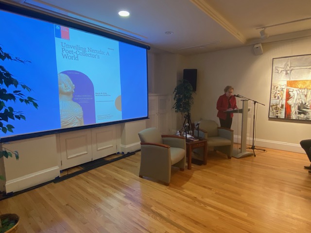 La presentación de la autora fue seguida de un conversatorio moderado por el Consejero de la Embajada, señor Luis Enrique Martin, y un espacio de preguntas del público que permitieron profundizar en los hallazgos del libro y en la singular relación de Neruda con sus mascarones. El diálogo entre la autora y los asistentes enriqueció la velada, abordando temas como el significado simbólico de las figuras, la experiencia de desafiar los propios relatos del poeta sobre su colección y la vigencia de este patrimonio cultural chileno.