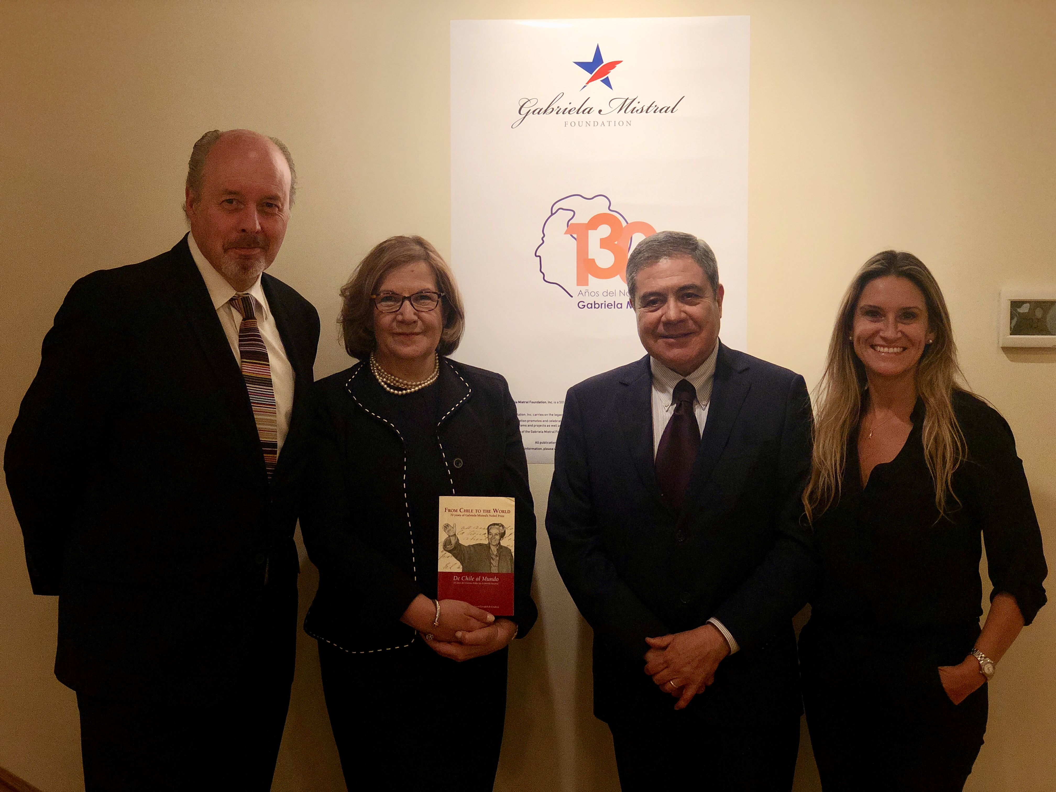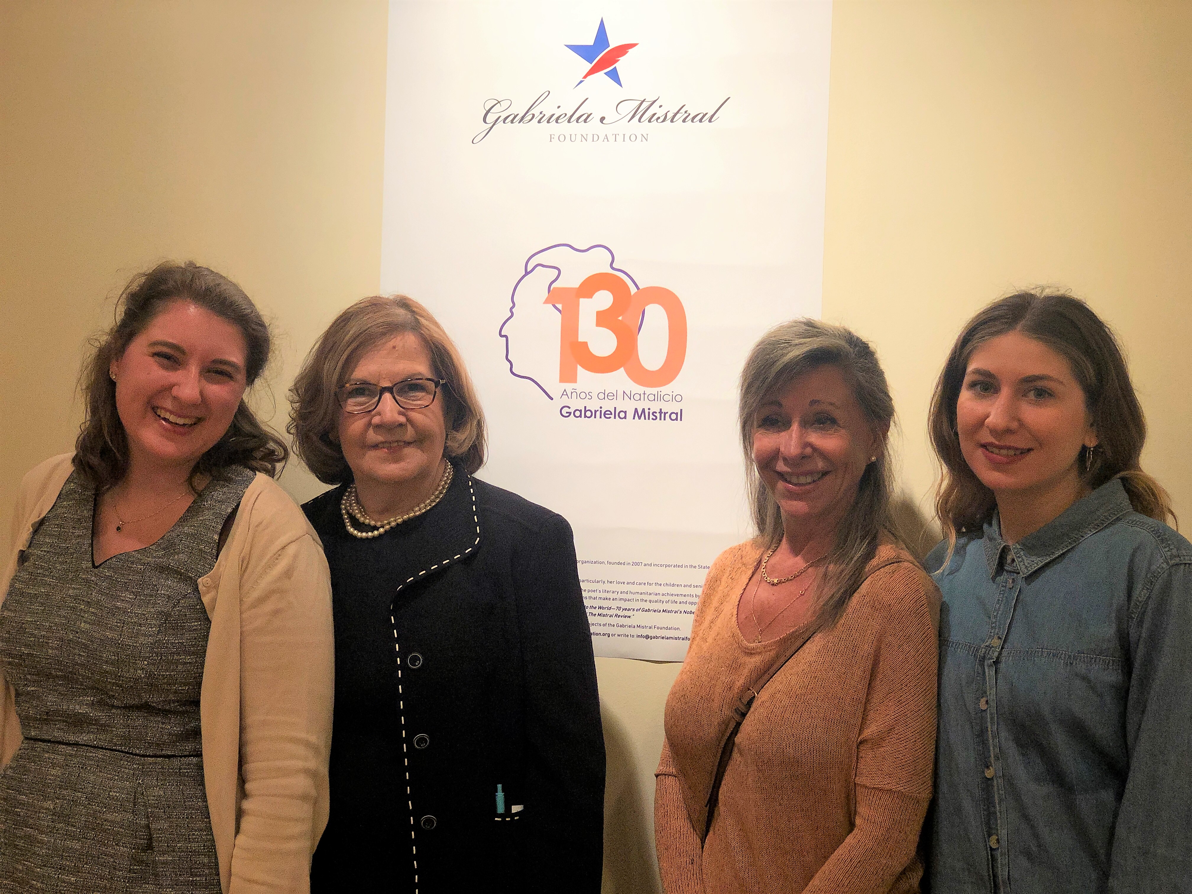 Pete McEvoy; Presidenta de Gabriela Mistral Foundation, Gloria Garafulich; Agregado cultural Jorge Canelas; y Barbara De Giorgis.