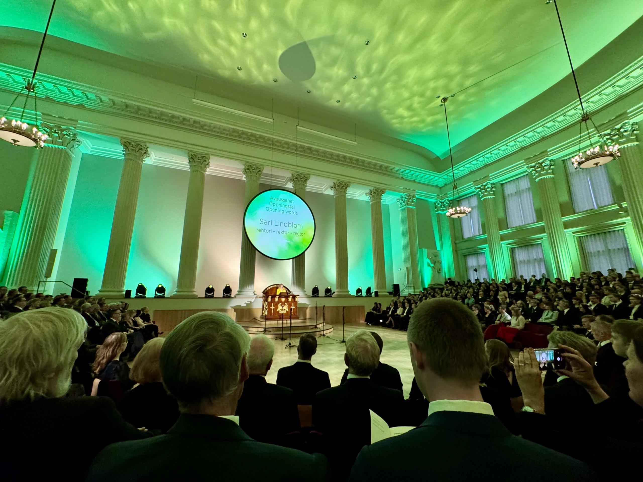 La rectora Sari Lindblom se refirió en su discurso a la resiliencia como motor de prosperidad ante la incertidumbre y las crisis. Destacó la importancia de una comunidad universitaria inclusiva y el apoyo a las habilidades particulares de cada estudiante, llamando a proteger la financiación de la educación y la investigación.