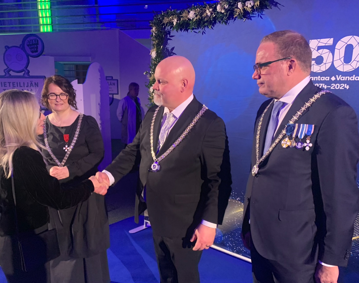 La embajadora Belén Sapag estuvo invitada a las celebraciones, oportunidad en que saludó y felicitó al Alcalde de Vantaa, señor Pekka Timonen, quien recordó su visita académica a Chile; la Presidente del Consejo de la Ciudad, señora Säde Tahvanainen; y al señor Mika Kasonen, Presidente de la Junta Ejecutiva de la Ciudad.