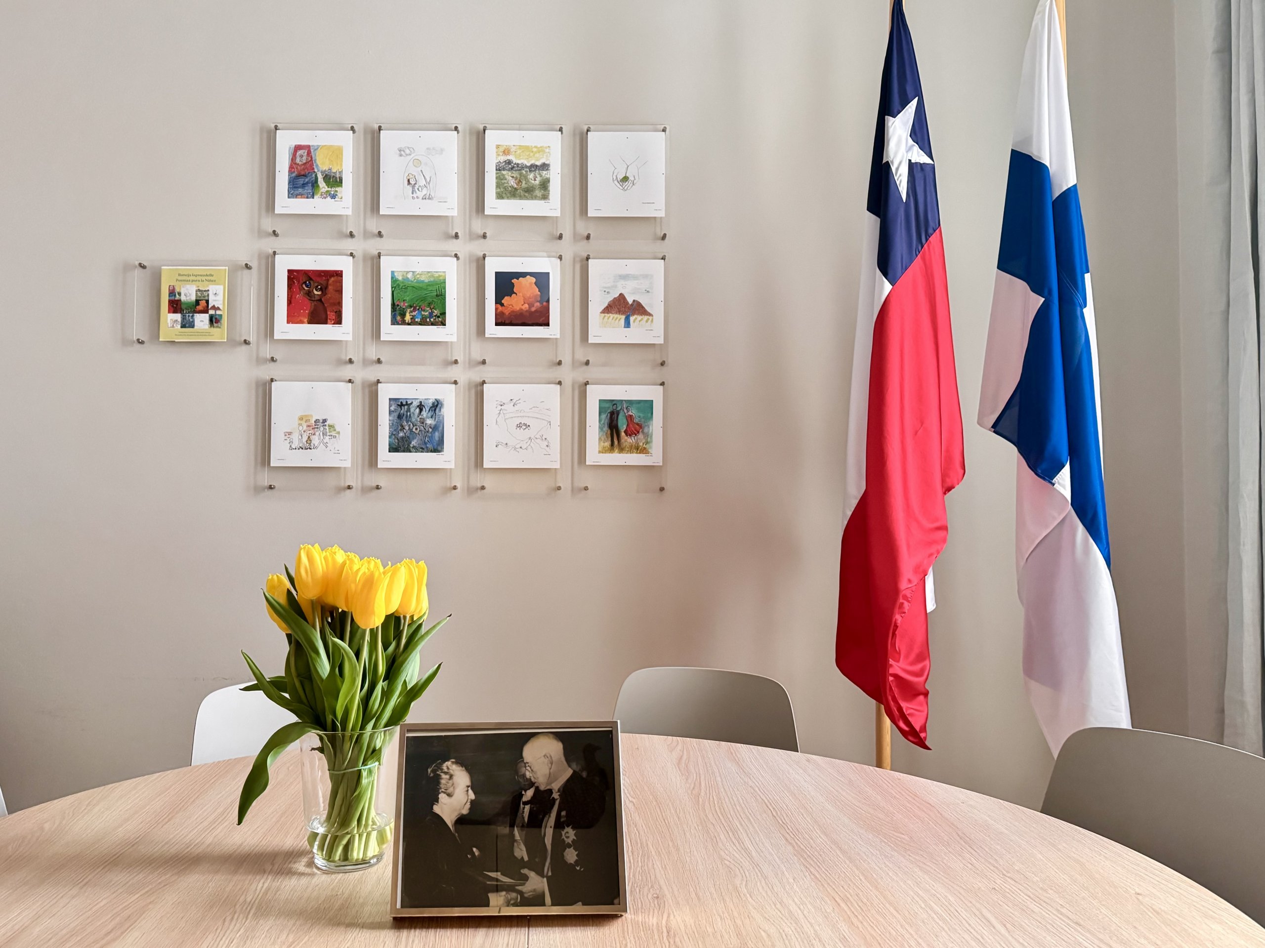 Con motivo del aniversario del nacimiento de Gabriela Mistral (Vicuña, 7 de abril de 1889), la Embajada de Chile en Finlandia inauguró una muestra artística en sus dependencias.