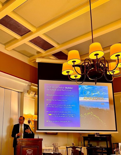 El embajador de Brasil en Finlandia, Luis Balduino, cerró el evento destacando el compromiso de Brasil con detener la deforestación y la degradación ambiental para 2030, en el marco de su rol como anfitrión de la COP30.