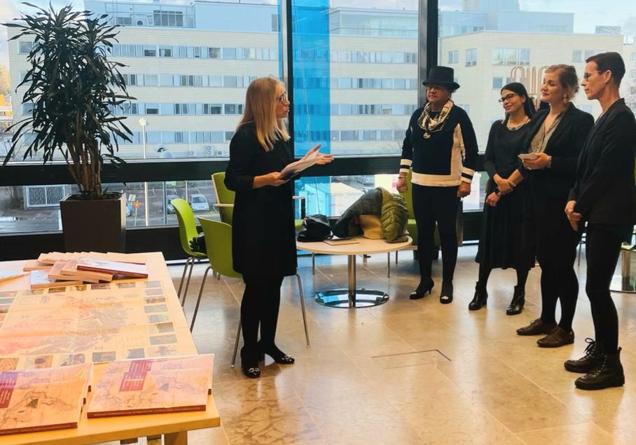 En el marco de la exposición, el día martes 11 de octubre de 2022 la Embajadora Belén Sapag hizo una presentación de la muestra, preparada por la Biblioteca Nacional de Chile y, junto a funcionarios de la Embajada, entregó a la biblioteca ejemplares del libro-catálogo de la exposición en inglés y español, así como de otros materiales compartidos por DIRAC, los que serán distribuidos en la red de bibliotecas de Espoo y también estarán disponibles en la red de bibliotecas del área metropolitana (Helmet).