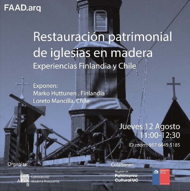 El 12 de agosto, el Embajador Rodrigo Olsen participó en el seminario online "Restauración Patrimonial de Iglesias en Madera", organizado por LAB Madera Araucanía de la Universidad Católica de Temuco en colaboración con la Universidad Aalto de Finlandia.
