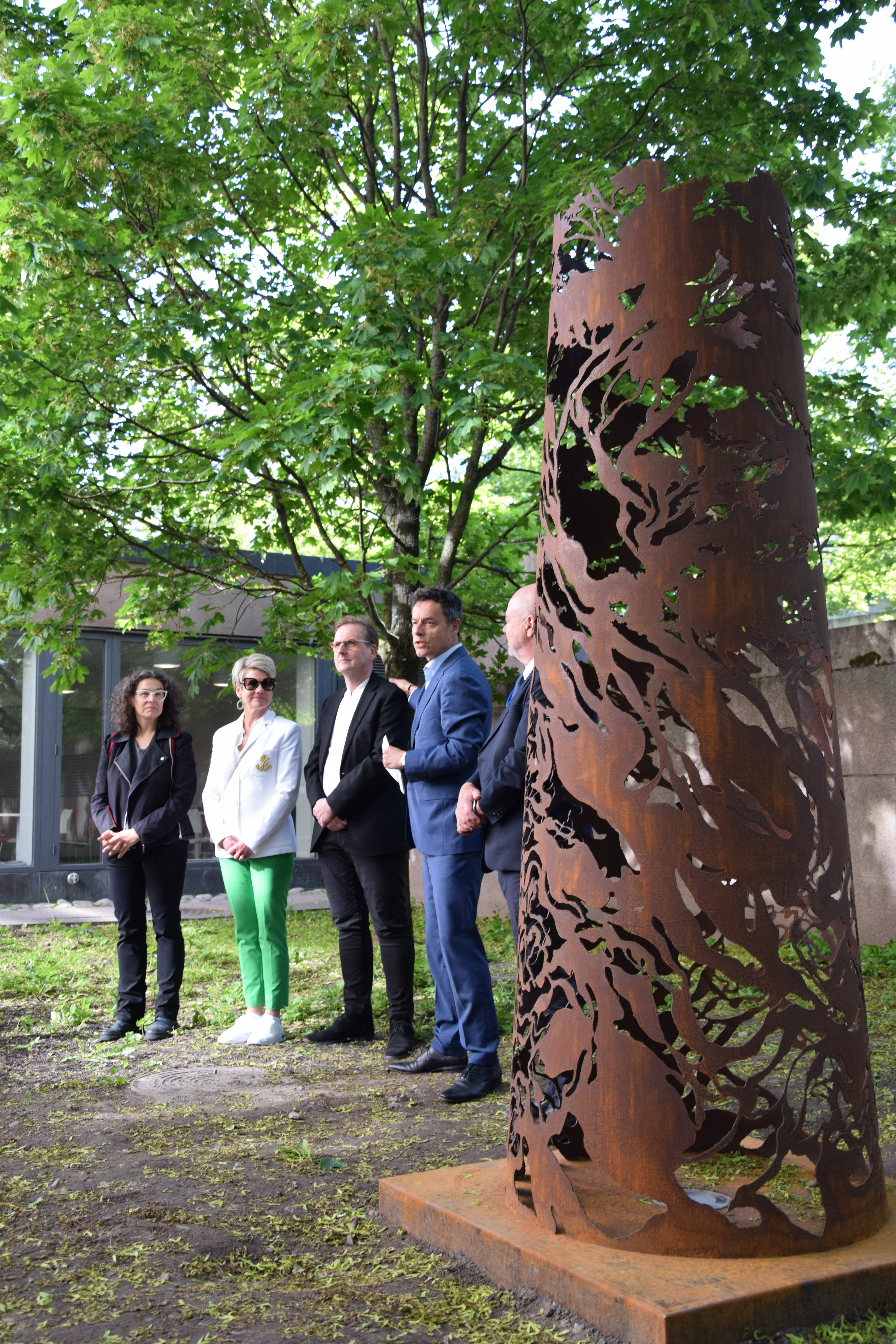 La ceremonia contó con la participación de la decana de la Facultad de Humanidades de la Universidad de Helsinki, Pirjo Hiidenmaa; el presidente del Congreso CEISAL, Jussi Pakkasvirta; el arquitecto de la Universidad a cargo del proyecto, Ari Nisonen; la gerenta de la empresa de acero auspiciadora del proyecto Pelti- ja Rautatyö Oy, Marjo Veitonmäki; y la artista Paola Vezzani junto al Embajador Rodrigo Olsen.