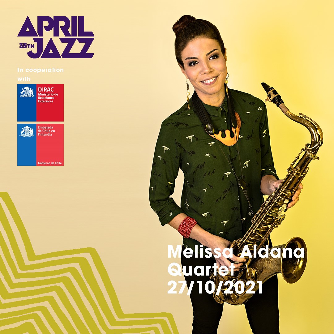 Con el auspicio de la Dirección de Asuntos Culturales (DIRAC) y de la Embajada de Chile en Finlandia, se presentó la destacada saxofonista chilena Melissa Aldana y su banda el miércoles 27 de octubre en el Centro Cultural de Espoo, como parte de la 35° versión del April Jazz Festival que excepcionalmente este año se celebró entre el 27 y el 31 de octubre.
