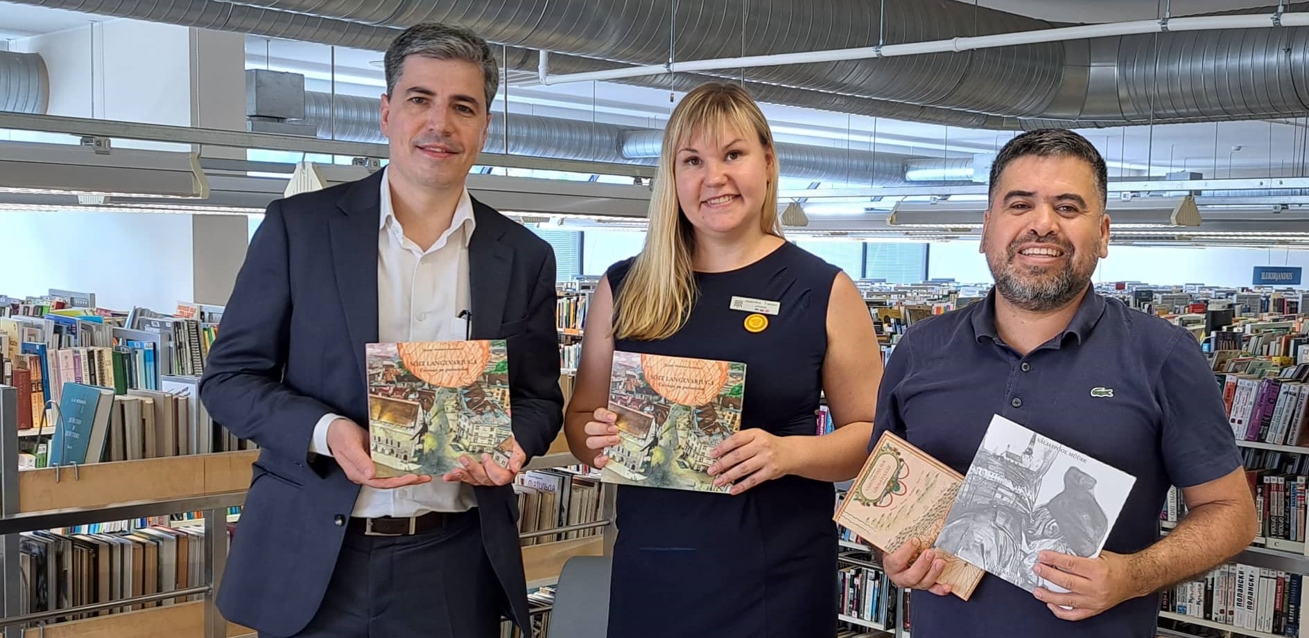 Asimismo, el Cónsul, junto al editor del libro, Marcelo Gatica, hicieron entrega de ejemplares a la jefa del Departamento de Lenguas Extranjeras de la Biblioteca Central de Tallinn, Jaanika Tappo, para que formen parte del sistema de bibliotecas de la ciudad.