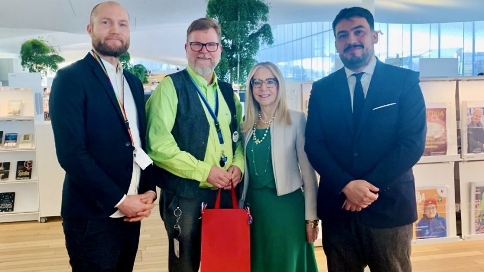 El 2 de marzo de 2023, la Embajadora Belén Sapag y el Segundo Secretario Víctor Conejeros visitaron la Biblioteca Central de Helsinki Oodi, donde se reunieron con el Jefe de la Unidad Internacional, Harri Annala, y el Director de Instalaciones, Eventos y Participación, Severi Hirvi.