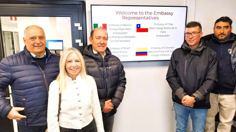 Durante la visita, la embajadora Belén Sapag sostuvo encuentro con el presidente Juan Carlos Field y la delegación y pudo acompañarlos en un recorrido por la empresa Vema.