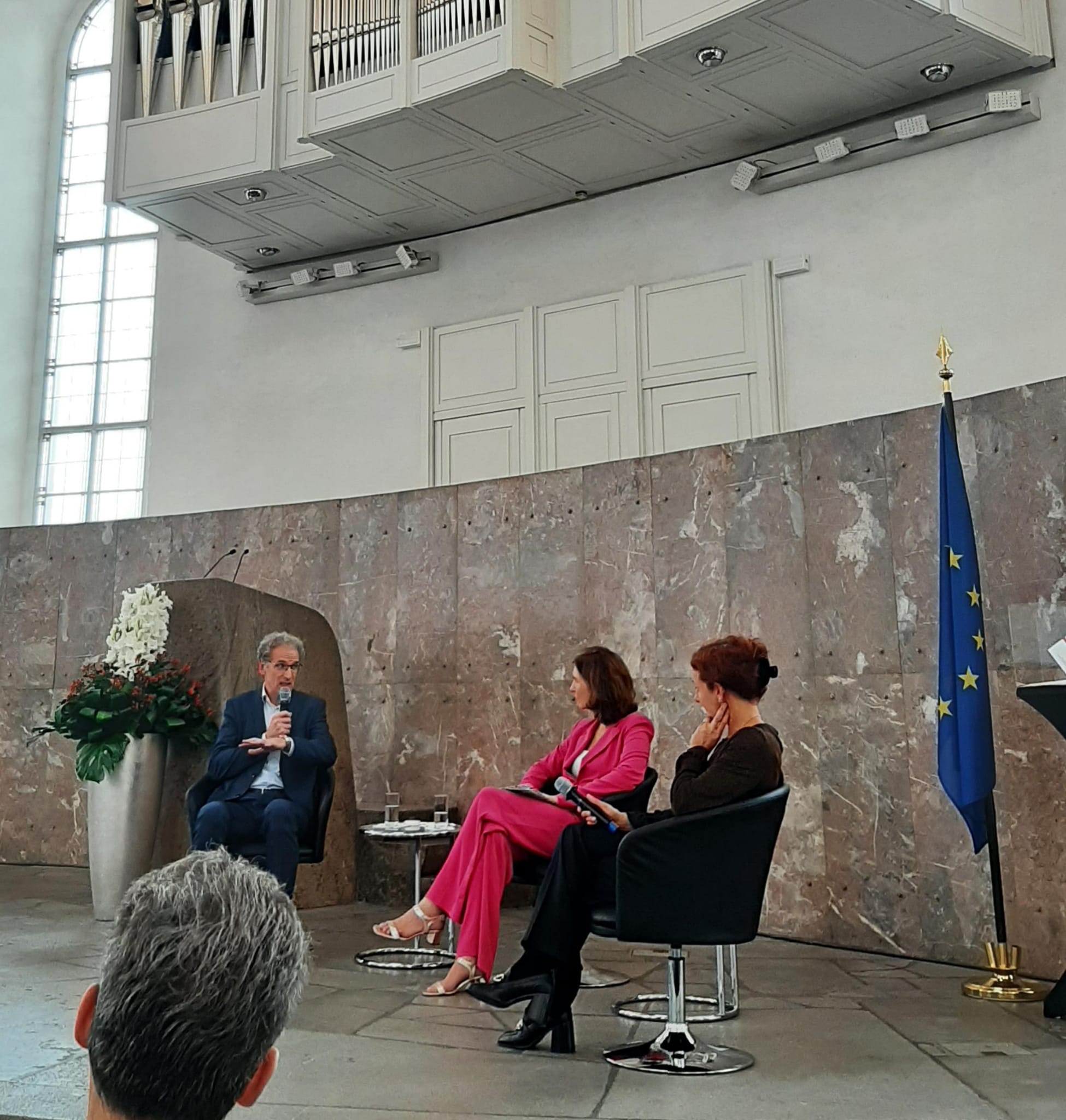 El alcalde mayor de la ciudad, Mike Josef dio la bienvenida a los presentes y en su discurso vinculó aspectos histórico-político centrales, que corresponden a Frankfurt y la Paulskirche, como emblema de la democracia y, asimismo, desde hace 33 años, el día 3 de octubre de 1990 como un hito por la reunificación germana y la consolidación de la misma democracia. Posteriormente, se realizó un panel en que dialogaron los escritores, Dirck Oschmann y la Juli Zeh sobre cómo continúa nuestra democracia.