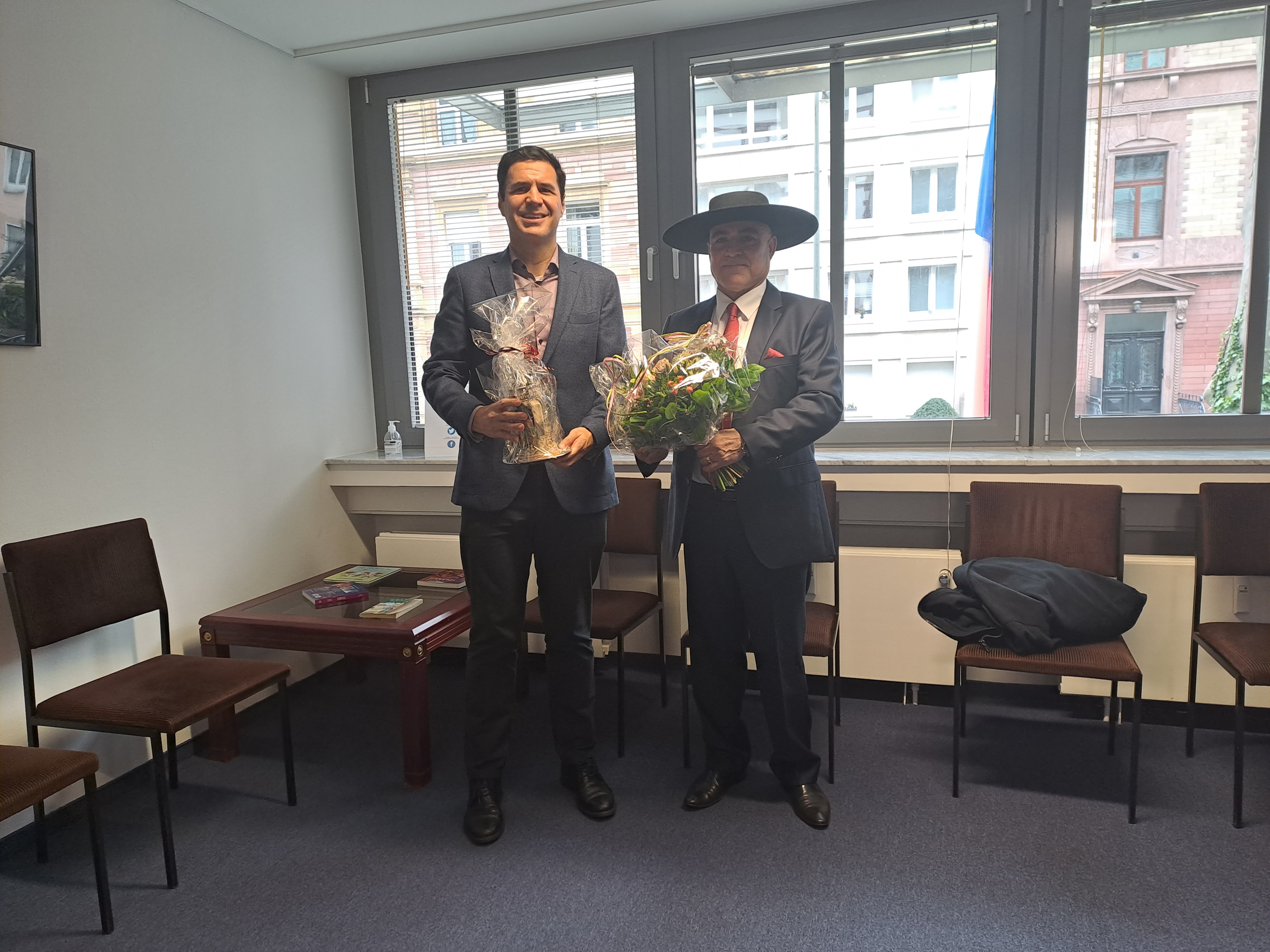 El miércoles 27 de diciembre el Cónsul General de Chile en Frankfurt, Francisco Mackenney recibió a integrantes del Grupo de Danzas Folclóricas de Chilenos en Frankfurt, Pehuén. En el encuentro participaron su Presidente, Sr. Leonel Jopia y parte de la agrupación.
