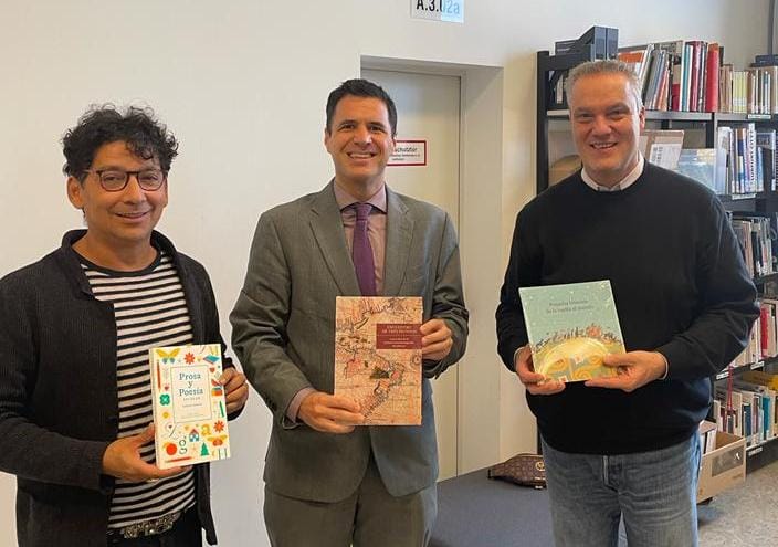 El miércoles 16 de noviembre, el Cónsul General de Chile en Frankfurt, Francisco Mackenney, realizó la entrega de 16 libros al colegio Albert-Schweitzer-Schule en la ciudad de Offenbach del Meno. La donación consistió en tres ejemplares de "Prosa y Poesía Escolar", de Gabriela Mistral, diez libros "Encuentro entre tres mundos" y tres tomos de la "Pequeña bitácora de la vuelta al mundo".