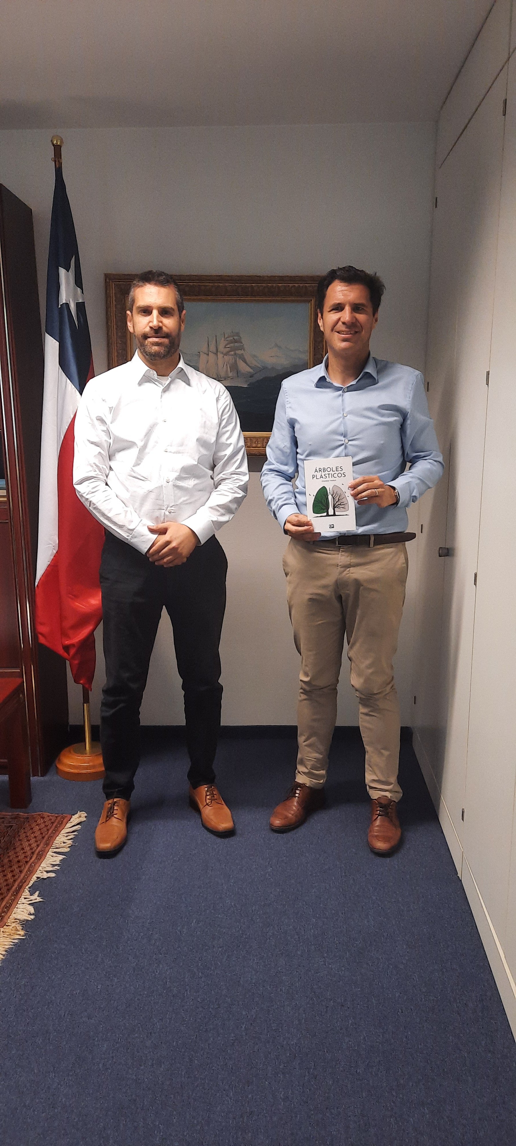 El viernes 17 de junio, el Cónsul General de Chile en Frankfurt, Francisco Mackenney, se reunió con el profesor de derecho y escritor chileno Cristóbal Hasbun para conversar sobre su primer libro de cuentos, titulado “Árboles Plásticos”.