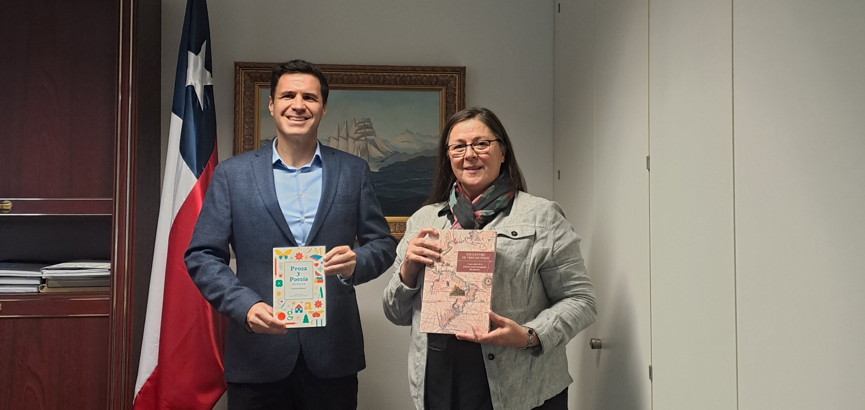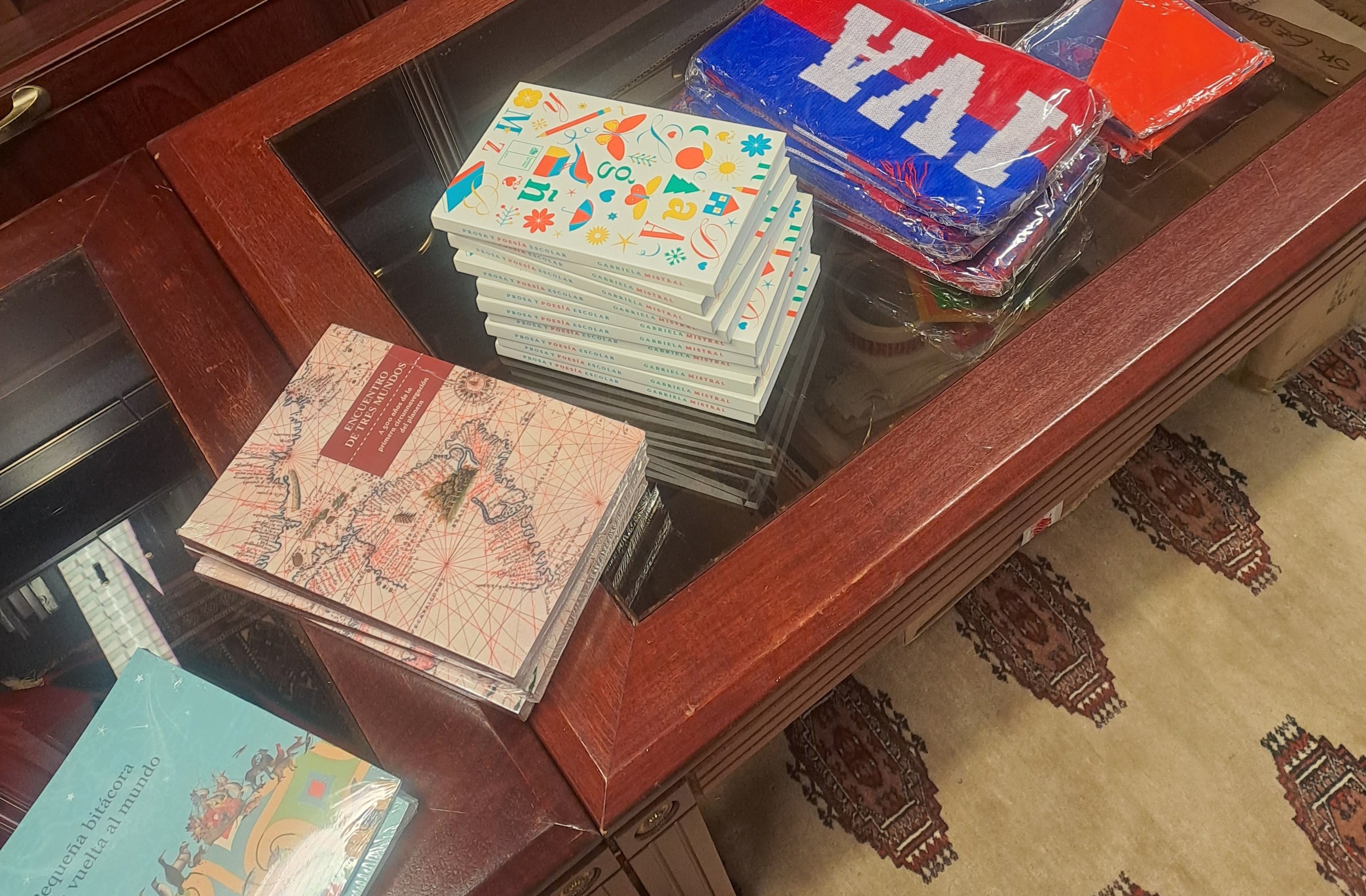 En la reunión se le entregaron diez libros de "Prosa y Poesía Escolar", de Gabriela Mistral, cuatro libros "Encuentro entre tres mundos" y seis tomos de la "Pequeña bitácora de la vuelta al mundo". Asimismo, material que corresponde a bufandas, pañuelos, banderas y capis de Chile que servirán para la VHS y sus futuras actividades.