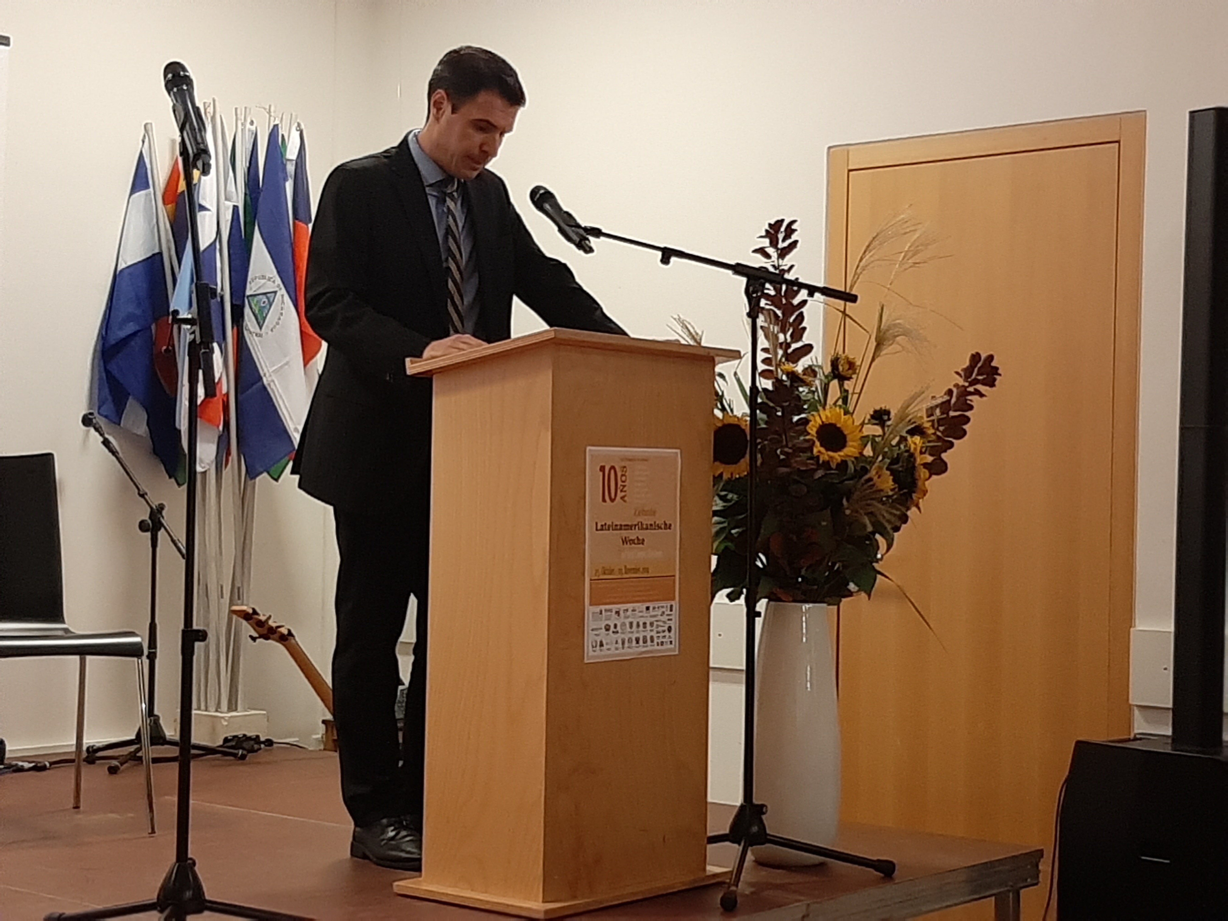 Al Cónsul Mackenney le correspondió dar un discurso a los presentes a nombre del grupo de los Cónsules Latinoamericanos en Frankfurt. En sus palabras, valoró los esfuerzos para realizar este evento en su décima versión, que no solamente abarca lo artístico y musical, sino que corresponde a una instancia de diálogo académico en donde los aspectos políticos, sociales y económicos de la región son abarcados.