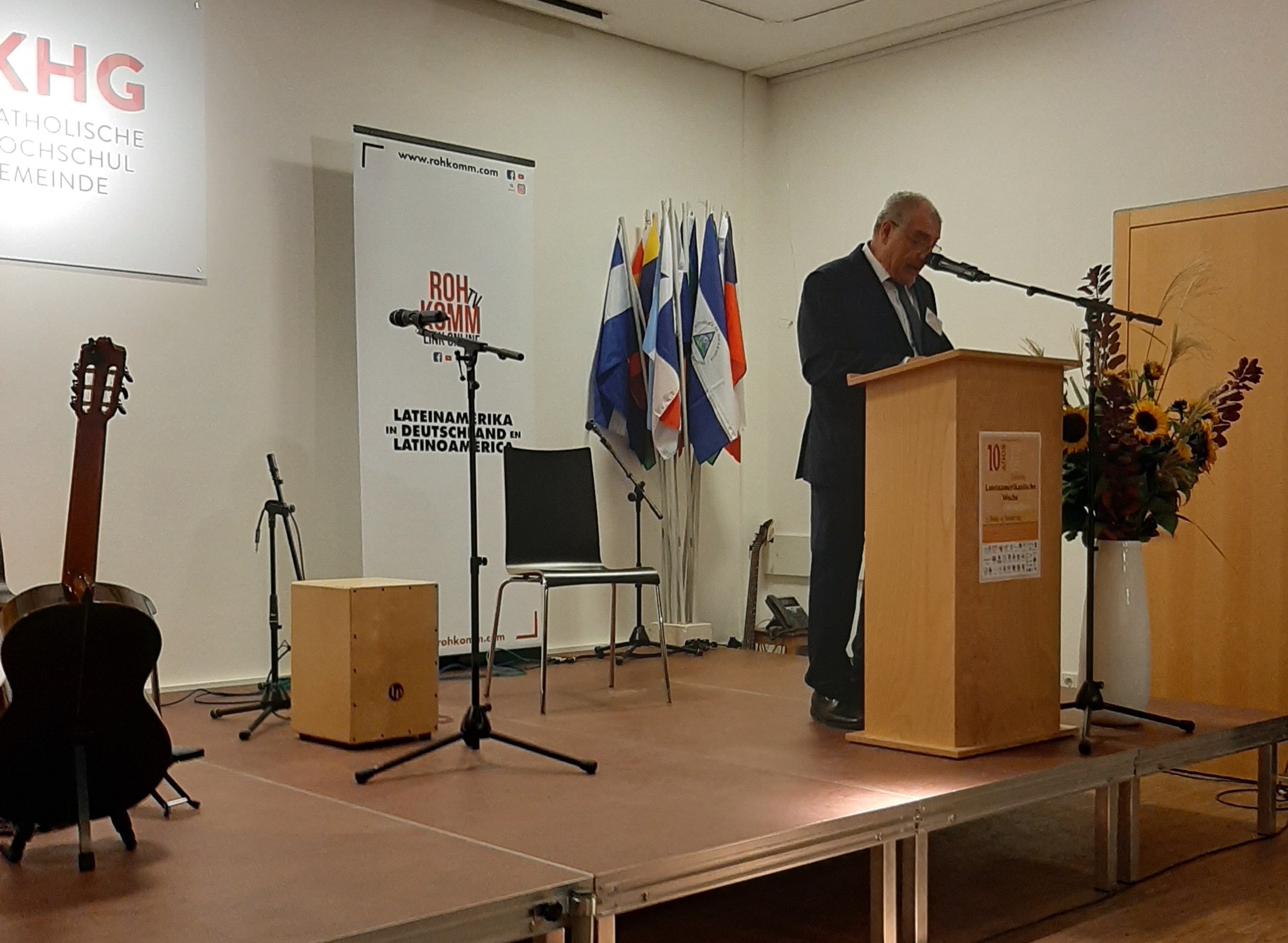 El organizador y coordinador de este evento es Iván Barbaric, connacional que trabaja hace más de 30 años en el centro católico de esta Universidad y quien se dirigió a las autoridades y dio la bienvenida a los asistentes. Destacaron los saludos del Vicepresidente de la Universidad Goethe, Rolf van Dick, el Presidente Ejecutivo de la World University, Kambiz Ghawami, y el pastor del Centro católico de la Universidad, Joachim Braun.