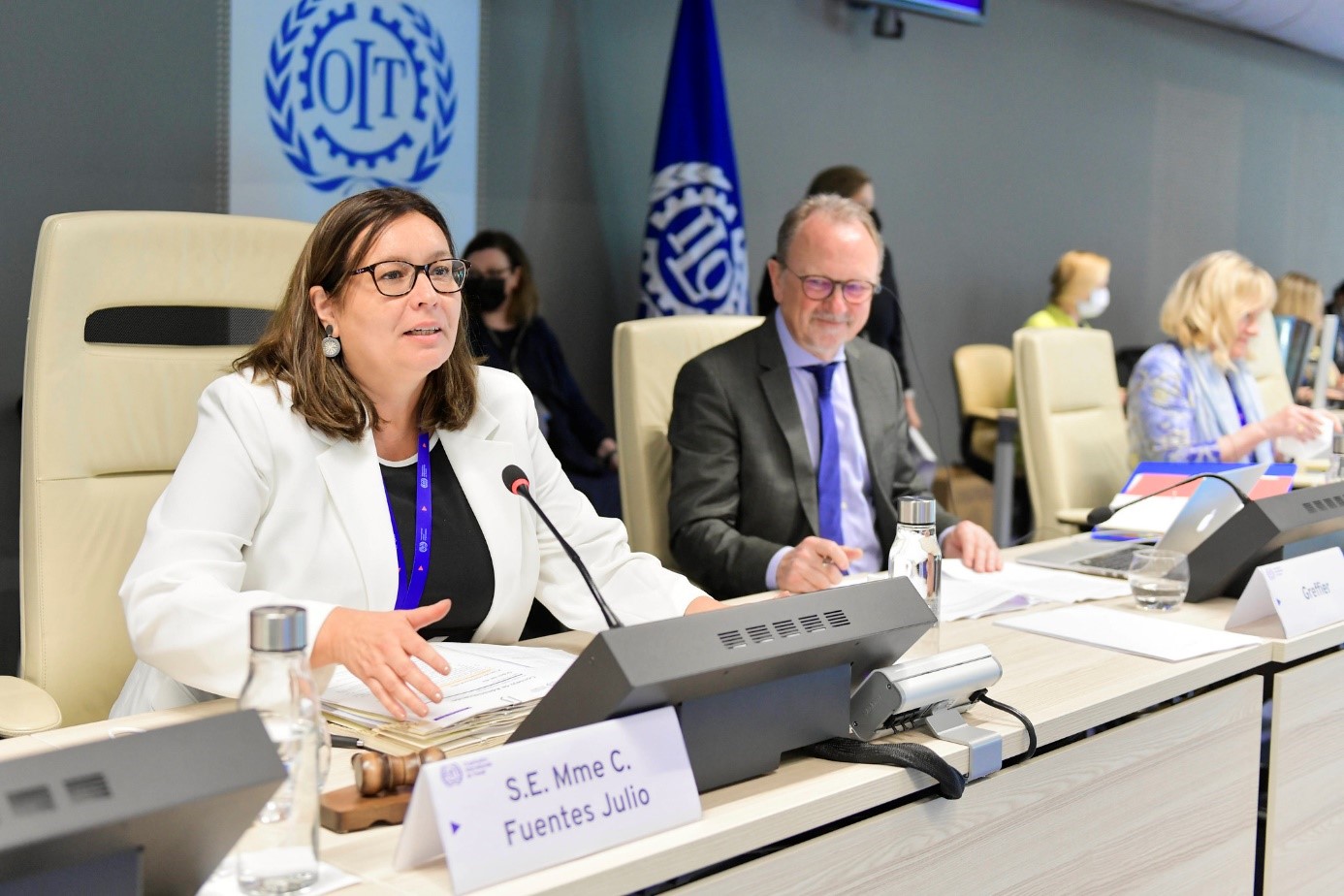 La Embajadora de Chile ante la Oficina de Naciones Unidas y otros Organismos Internacionales con sede en Ginebra, Claudia Fuentes Julio, asumió en nombre de Chile, hasta junio de 2023, la Presidencia del Consejo de Administración de la Organización Internacional del Trabajo (OIT).