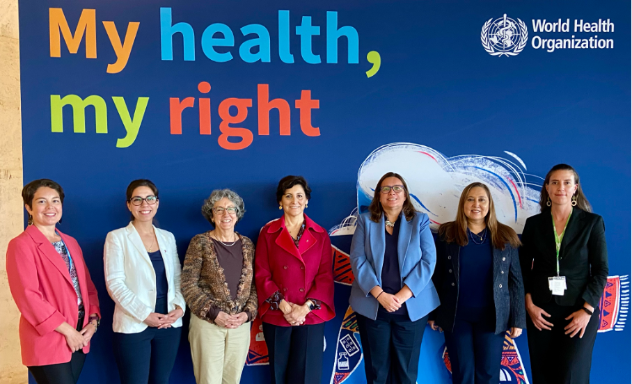 La delegación chilena fue encabezada por la Ministra de Salud, Ximena Aguilera, junto a la Embajadora Claudia Fuentes Julio, la Dra. Raquel Child Goldenberg, la Embajadora Carla Serazzi, y la Dra. Alejandra Pizarro Ibáñez.