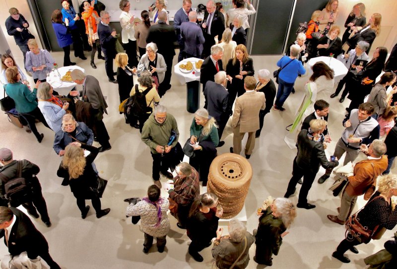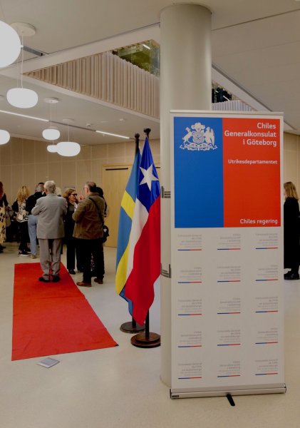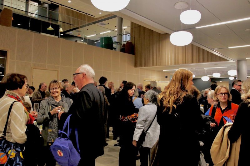 El emotivo evento fue precedido de una concurrida recepción, de cerca de 200 personas; entre ellas, de representantes de las asociaciones chilenas, cuerpo consular acreditado, instituciones suecas, mundo privado, alumnado de la universidad y público general. Para la especial ocasión, la universidad dispuso las banderas de Chile y Suecia en los mástiles del frontis de la facultad.