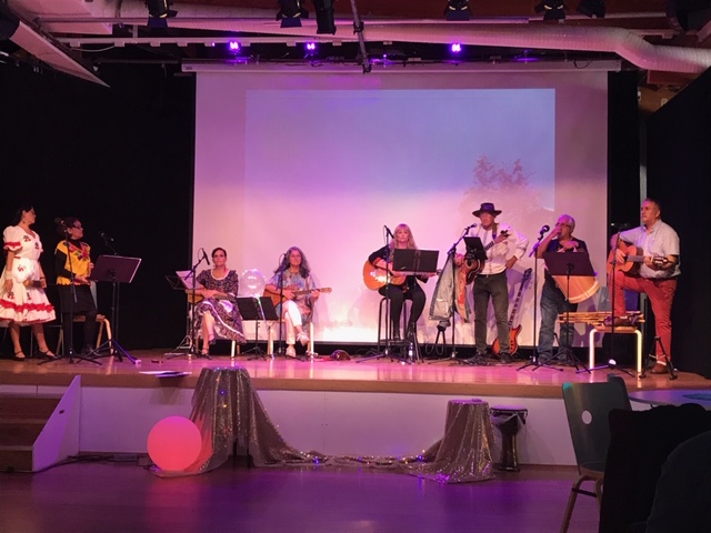 Navegamos los poemas en castellano y sueco, con voces de destacados miembros de ambas comunidades, quienes envolvieron de magia el momento, interpretando música chilena.