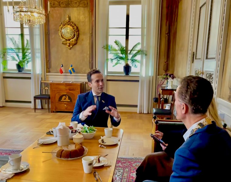 El Cónsul General de Chile, Manuel José Saldías, se reunió el 1 de febrero de 2023 con el nuevo Alcalde de la ciudad de Gotemburgo, Aslan Akbas.