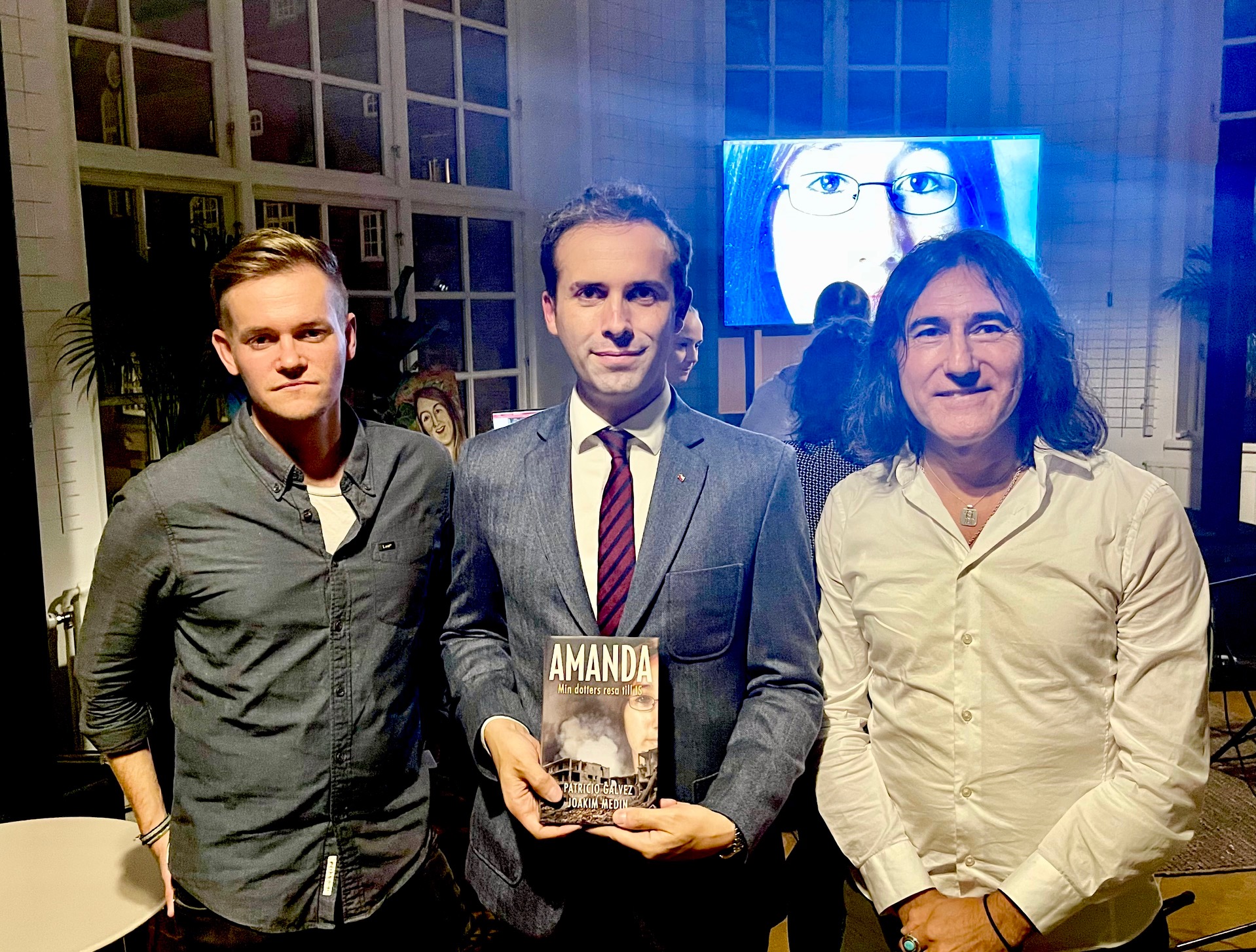 El Cónsul General de Chile en Gotemburgo, Manuel José Saldías, asistió ayer, miércoles 14 de septiembre, a la actividad de lanzamiento en Suecia del libro "Amanda - Min dotters resa till IS" (en español, "Amanda - El Viaje de mi Hija al IS"), de co-autoría del destacado connacional residente en Gotemburgo, poeta y músico, Patricio Gálvez, junto al periodista y escritor sueco, Joakim Medin.