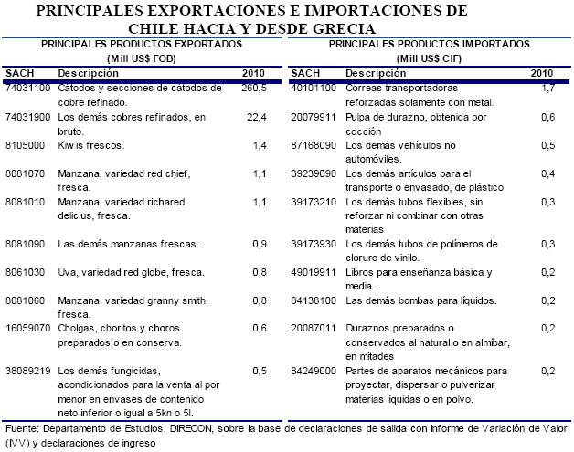 Para obtener mayor información respecto al Comercio Exterior entre Chile y Grecia puede dirigirse al sitio web de ProChile