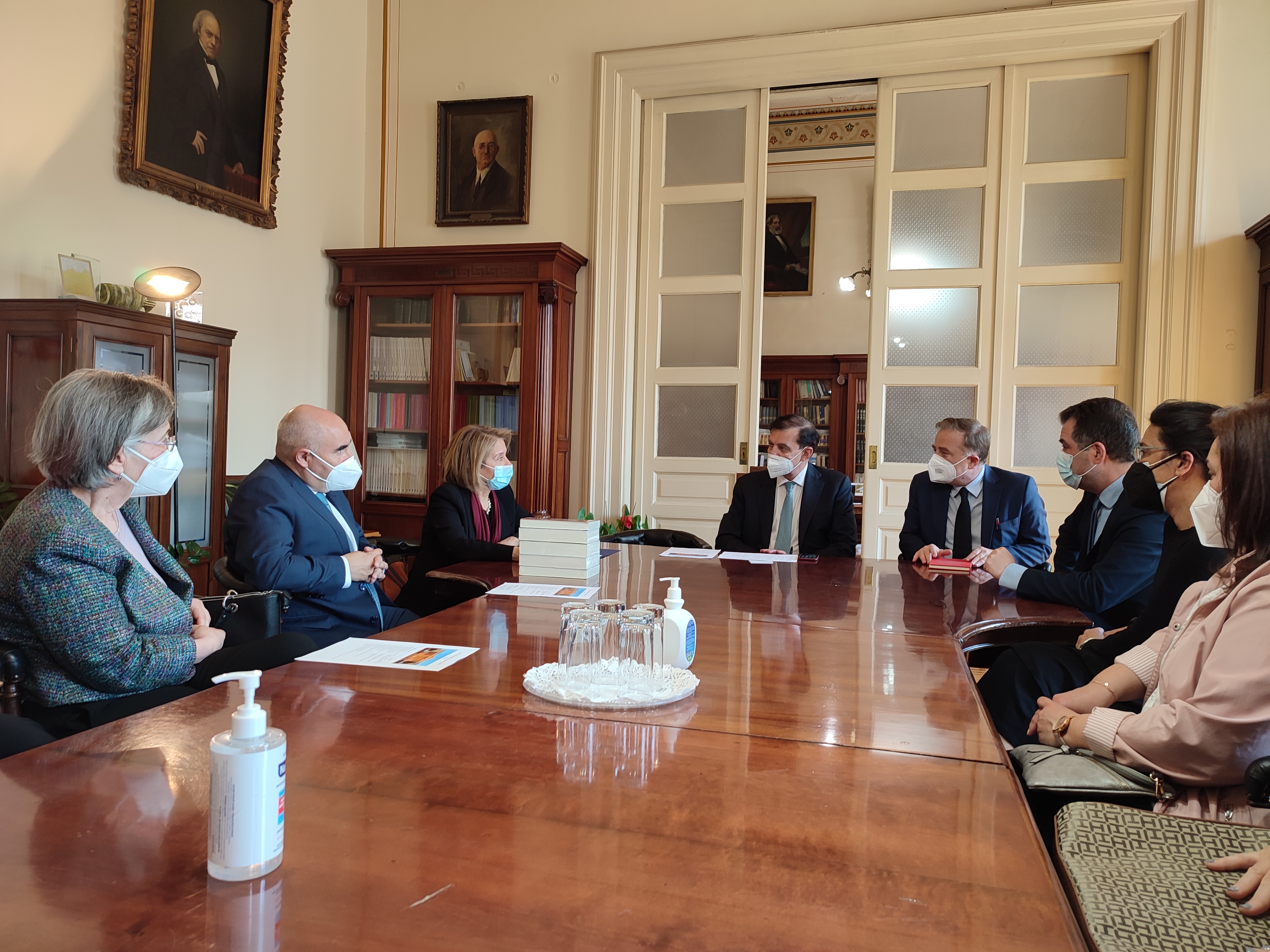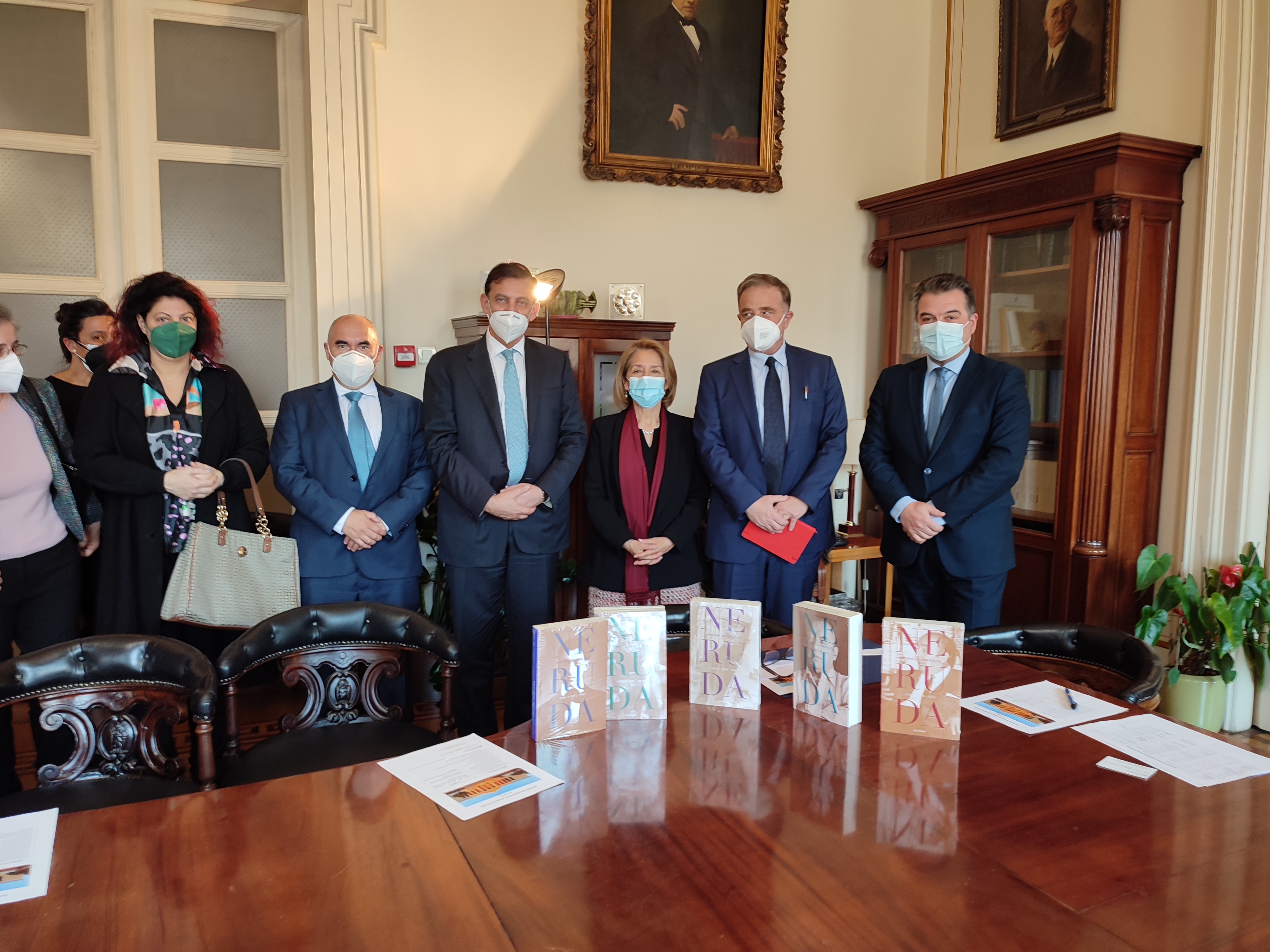 La Embajadora Ximena Ares, acompañada del Consejero Manuel Lara, sostuvo un encuentro con el rector de la Universidad Nacional y Kapodistriaka de Atenas, Meletios Dimopoulos, para hacer entrega de la donación de una colección de escritos de Pablo Neruda a la biblioteca de la institución.