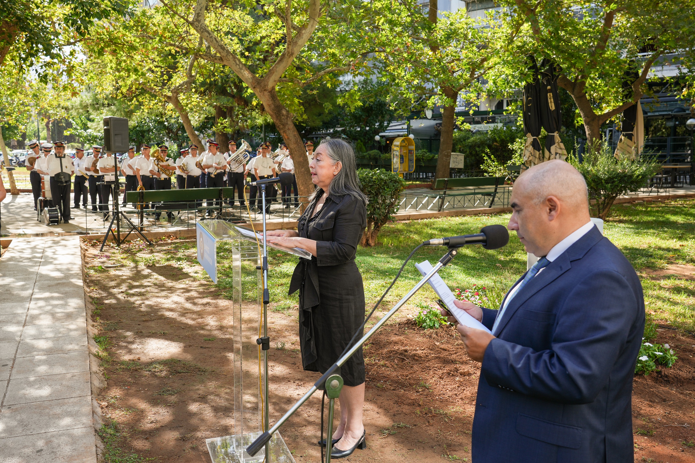 Precisamente ayer en esa plaza se realizó una ceremonia de conmemoración que fue encabezada por la embajadora de Chile en Grecia, Marisol Pérez, y que contó con la participación del viceministro de Relaciones Exteriores de Grecia, Georgos Kótsiras; la directora General de Protocolo y exembajadora de Grecia en Chile, Aglaía Balta; representantes de la Municipalidad de Atenas; embajadores y embajadoras de los países que recibieron a ciudadanos chilenos perseguidos por la dictadura; connacionales residentes en Grecia, e invitados especiales.