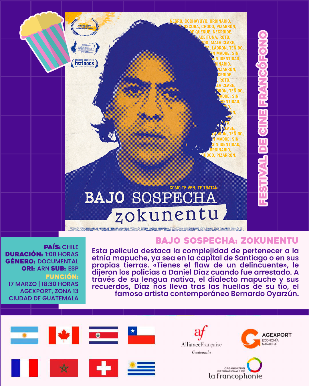 En esta ocasión, Chile como país observador apertura el festival de cine francófono con la presentación del documental “Bajo Sospecha”, el cual muestra un interesante viaje a través de las obras del reconocido artista contemporáneo Bernardo Oyarzún, desde la perspectiva de su sobrino Daniel Díaz.