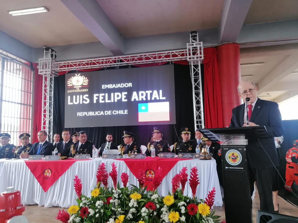 El Embajador Luis Felipe Artal Cajiao, asistió al LXXII Aniversario de la Fundación del Cuerpo Voluntario de Bomberos de Guatemala, fundado por el Ex Embajador de Chile Rodrigo González Allendes.