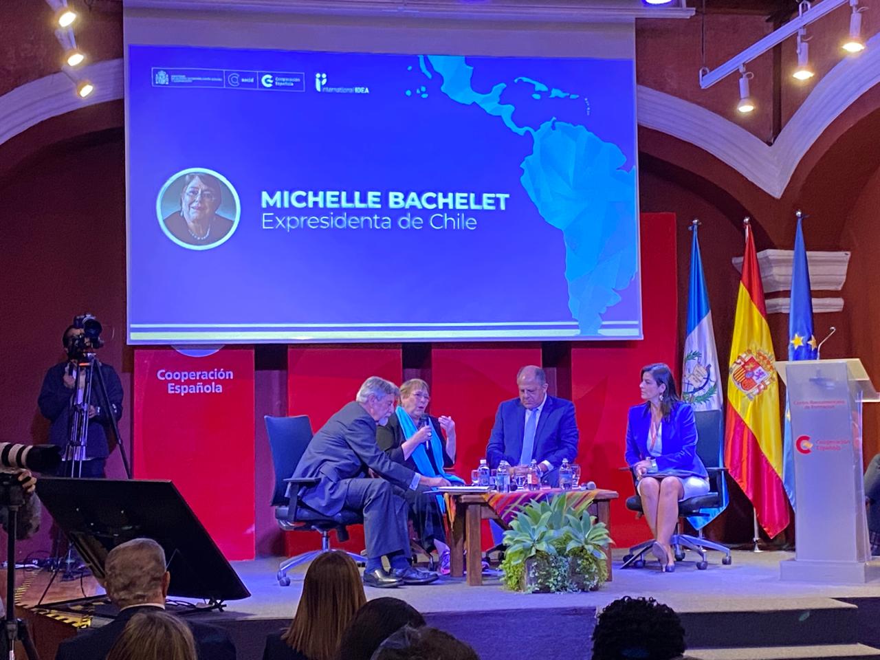 La expresidenta Michelle Bachelet participó el día 3 de octubre en el Seminario Internacional celebrado en la ciudad de Antigua: “¿Cómo frenar retrocesos democráticos en América Latina? Experiencias y diseños para fortalecer instituciones y la resiliencia democrática”.