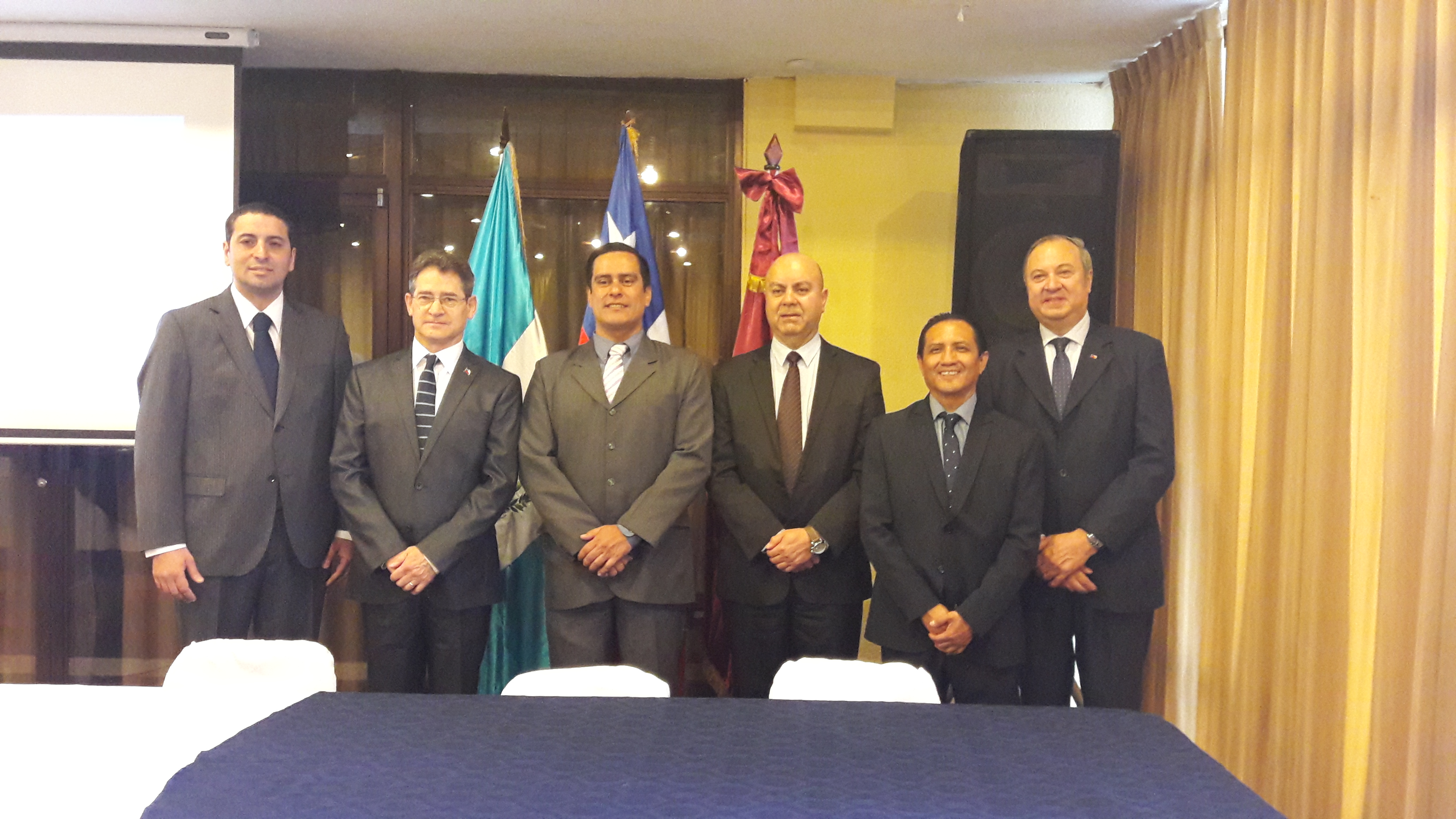 De izq. a der.: Octavio Surfán, Embajador Javier Becker, Raúl Robles (IDPP), Luis Soto, Idonaldo Fuentes (IDPP) y Ministro Consejero Miguel Ángel Pablo.