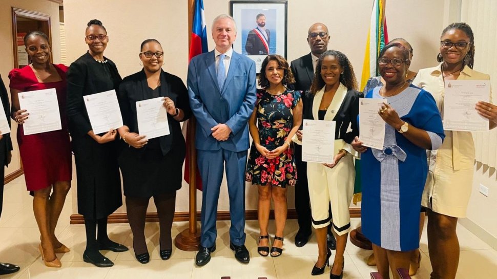 Durante la semana del 22 al 26 de julio se llevó a cabo el cierre, de manera presencial, del curso de Español que desarrolla AGCID anualmente junto con la Universidad de Chile para funcionarios de CARICOM. La oportunidad contó con la visita de la coordinadora de Español para Extranjeros y coordinadora de Estudiantes Internacionales de la Facultad de Filosofía y Humanidades de la Universidad de Chile, profesora Claudia Flores, que, junto con esta Embajada, encomiaron sus mayores esfuerzos para que la actividad resultase un éxito.