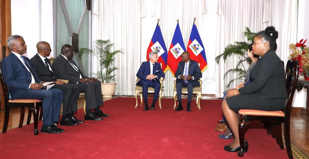 Hoy, martes 12 de noviembre, el Embajador de Chile en Haití, Rodrigo Donoso, presentó sus cartas credenciales ante el Presidente de la República de Haití, Jovenel Moïse, en el Palacio Nacional.