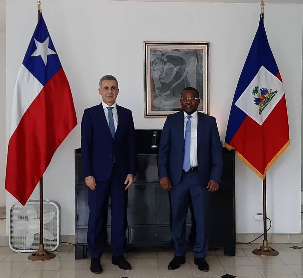 Este miércoles 4 de noviembre, el Embajador de Chile en Haití, Rodrigo Donoso, recibió en la Residencia Oficial de Chile al Canciller de Haití, Claude Joseph, con el objeto de discutir sobre materias de mutuo interés.