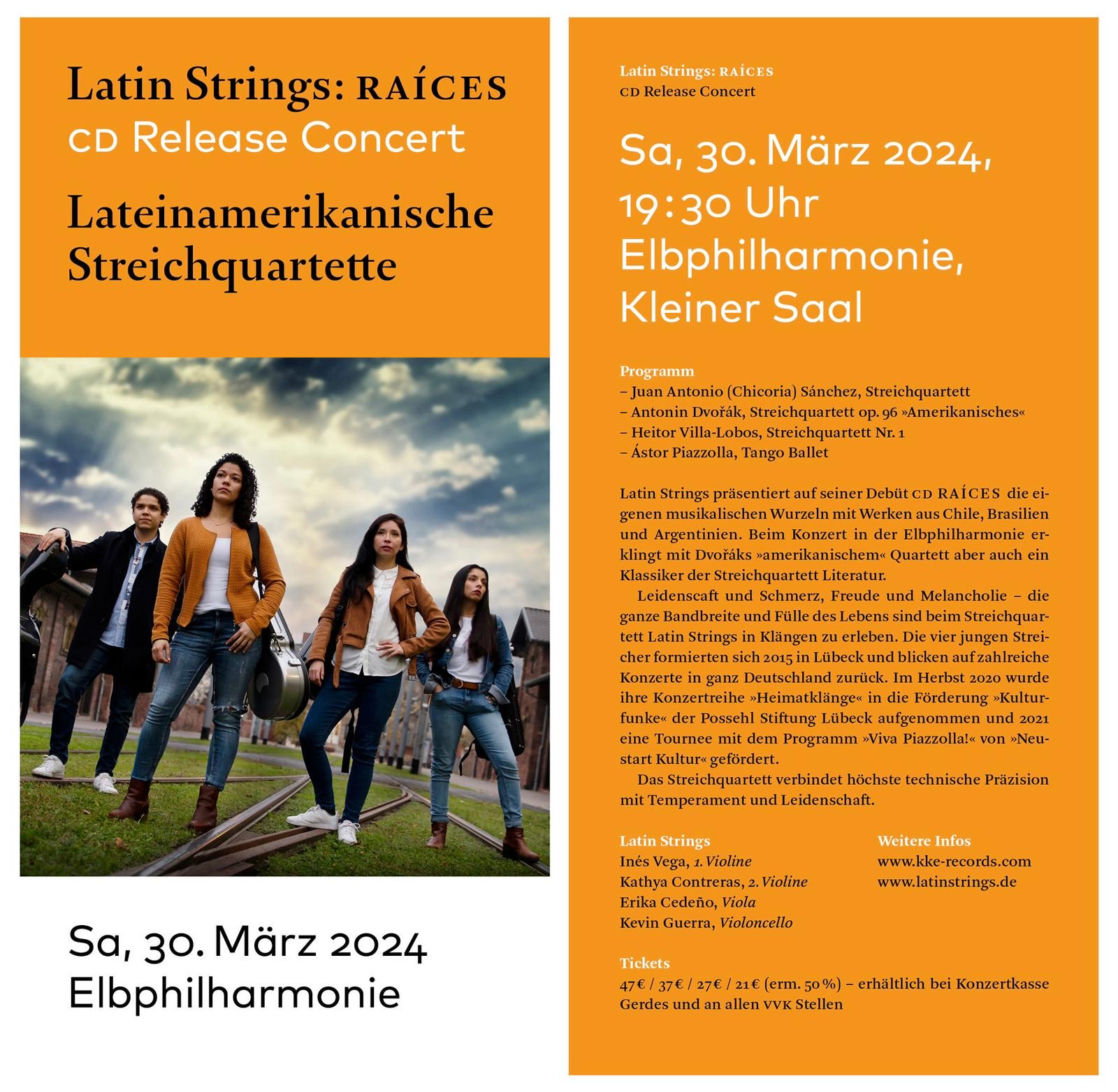 Las chilenas Inés Vega y Kathya Contreras, junto a dos colegas venezolanas, presentarán "Latin Strings: Raíces" en La Filarmónica del Elba.