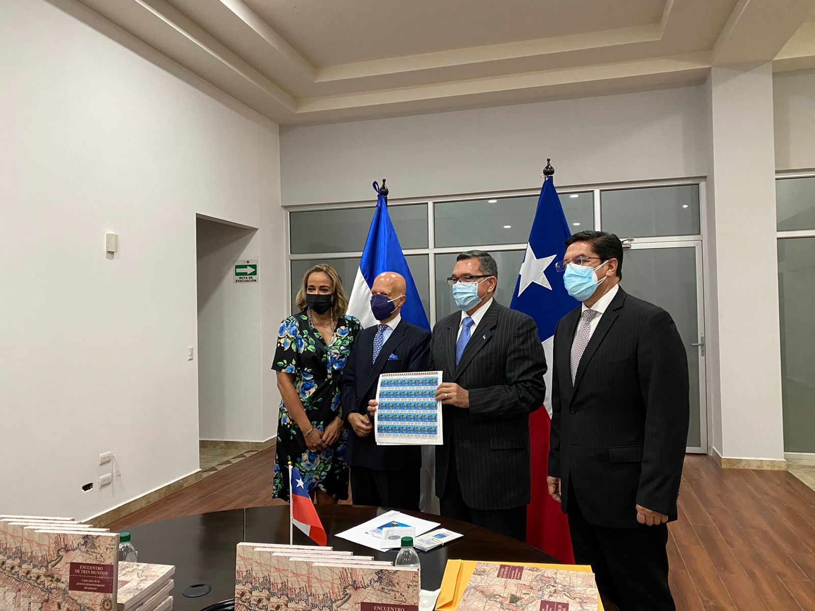 Hoy 13 de septiembre, el Embajador Enrique Barriga hizo entrega al Secretario de Estado para Asuntos de Política Exterior de Honduras, José Isaís Barahona, de la estampilla conmemorativa editada por Correos de Chile y la Cancillería, como un homenaje al Bicentenario de Centroamérica, naciones todas que han forjado una antigua relación de amistad con nuestro país, basada en el respeto reciproco y la cooperación.