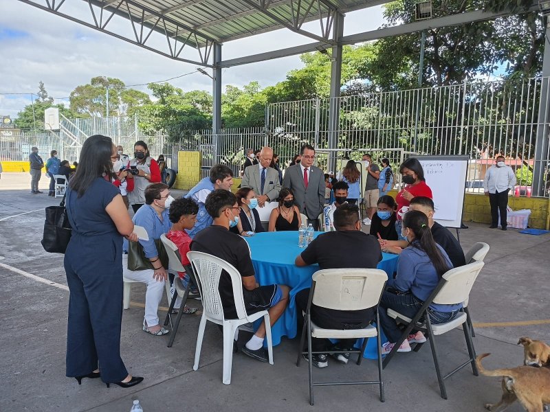 En el marco del 77 aniversario de las Naciones Unidas se realizó el encuentro con jóvenes “construyendo esperanza en Honduras”, donde participó el Embajador de Chile, Enrique Barriga., quien visitó el Centro Comunitario Juvenil de San Miguel, oportunidad que se reunió con 50 jóvenes para dialogar sobre los desafíos en sus respectivas comunidades de temas como disminución de la pobreza, salud y bienestar, igualdad de género y paz y seguridad.