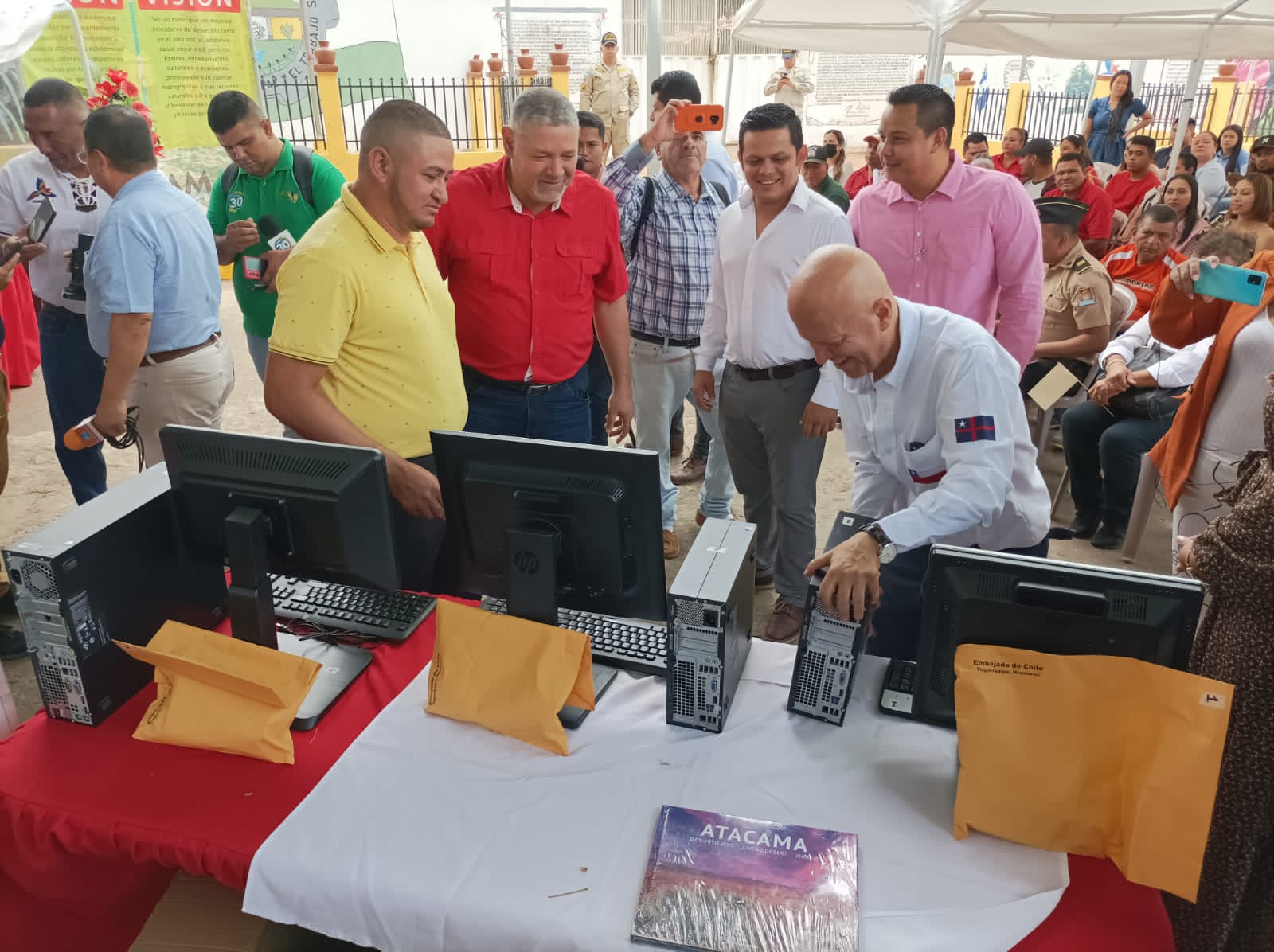 El Alcalde Lobos junto con transmitir sus saludos al Presidente Gabriel Boric y destacar la figura del vate nacional, agradeció vivamente la presencia del Embajador Barriga y su compromiso con la educación y el apoyo a la ciudad de Catacamas. Dicho equipamiento donado facilitará el trabajo diario de la Escuela Pablo Neruda.