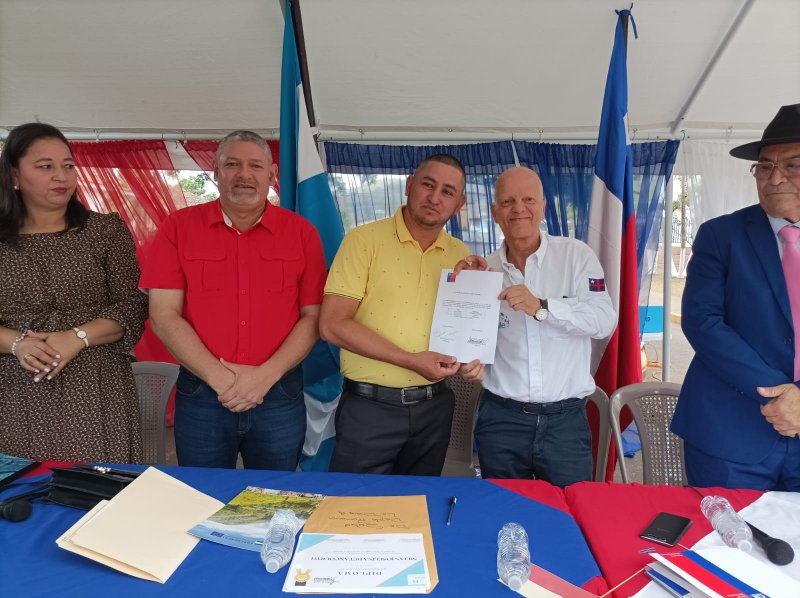 Este viernes 14 de abril, el Embajador de Chile en Honduras, Enrique Barriga, visitó la ciudad de Catacamas en el departamento de Olancho para reunirse con el Alcalde Marcos Ramírez Lobos y hacer entrega de tres computadores a la Escuela Pablo Neruda de Cerro Verde, Rio Blanco.